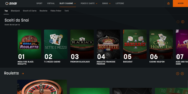Come evidente, abbiamo messo SNAI Casino al primo posto della nostra guida.