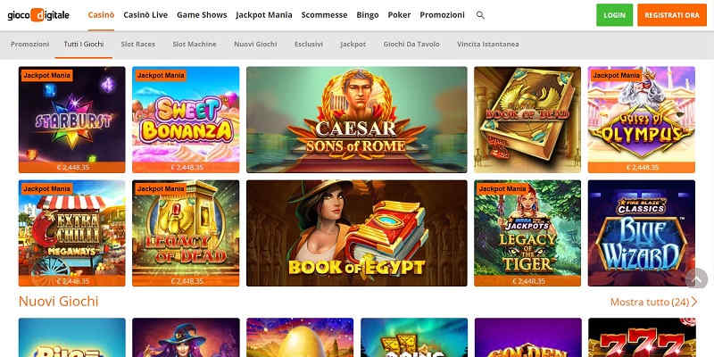 Come abbiamo anticipato prima, la selezione di giochi offerta da Gioco Digitale Casino è veramente immensa. Nel sito troviamo slot races, giochi da tavolo, giochi di carte, giochi con vincita istantanea, game show, bingo, poker, e le sue acclamate scommesse sportive.