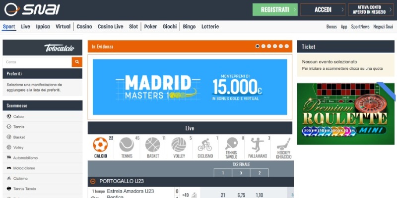 Come evidenziato, è SNAI il numero 1 tra i miglior siti scommesse online in Italia.