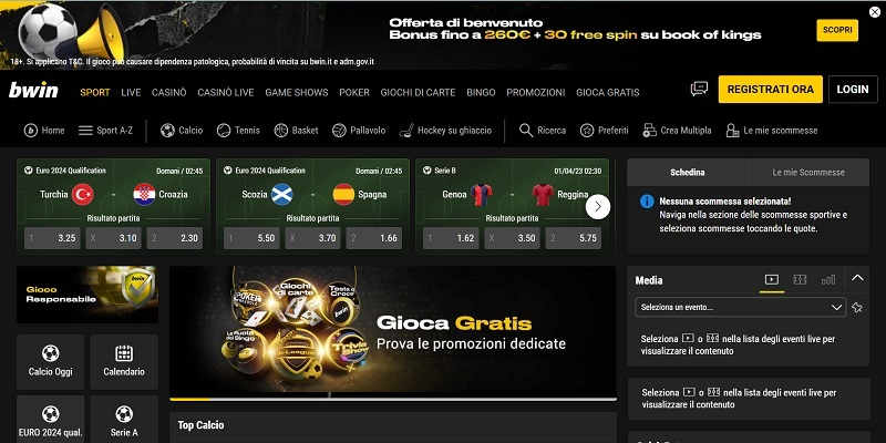 Per chiudere la top 5 abbiamo pensato a Bwin, uno dei più importanti bookmakers di scommesse sportive online in Italia.