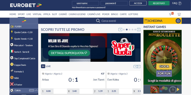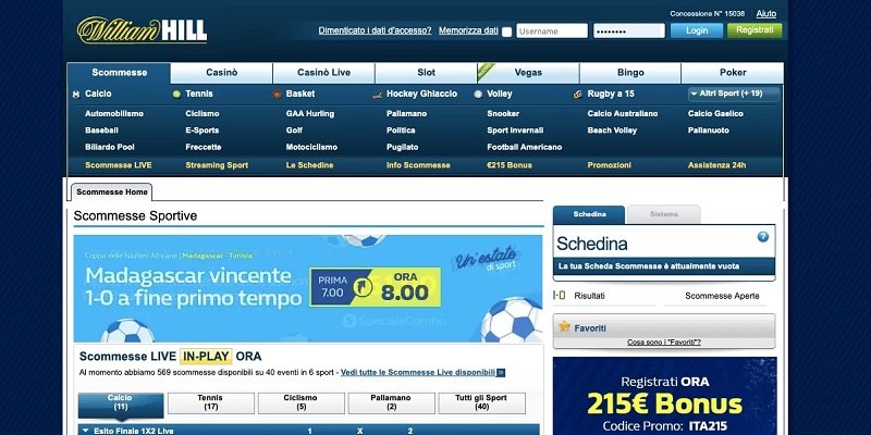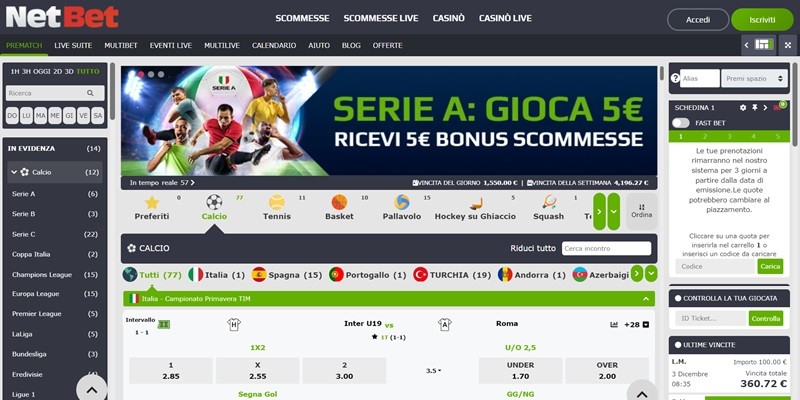 Lo abbiamo scelto come migliore sito di scommesse online in Italia perché accoppia un bonus benvenuto molto ricco ad un palinsesto molto approfondito.