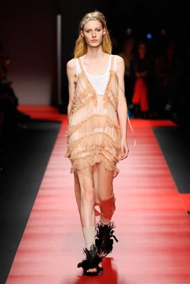 Ugualmente emozionante, seppure caratterizzata da uno mood e un approccio differenti, la bellissima collezione firmata da Alessandro Dell’Acqua per N°21. Partendo dallo stile fotografico di Corinne Day e Tina Modotti, lo stilista ha disegnato infatti una serie di abiti sospesi tra fragilità e forza, romanticismo e realtà, femminile e maschile. Due esempi? Una tuta da lavoro in pizzo e una sorta di pajama da uomo in seta indossato come completo da giorno.