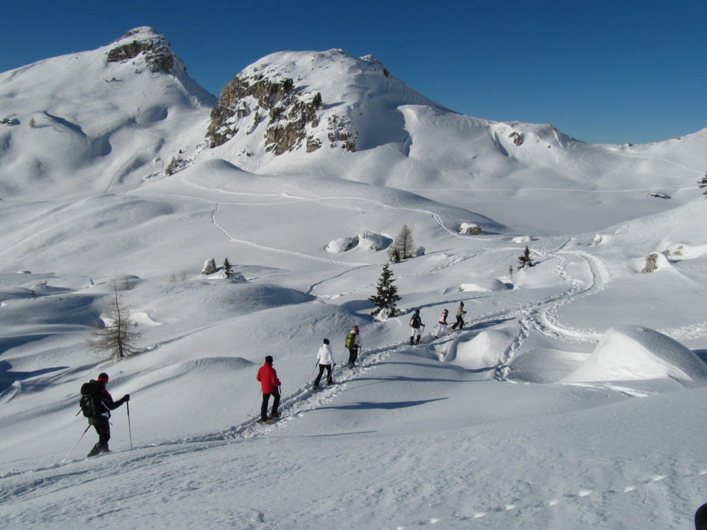 La ciaspolata di primavera è una delle attività più divertenti da fare in montagna approfittando delle ultime nevicate.
