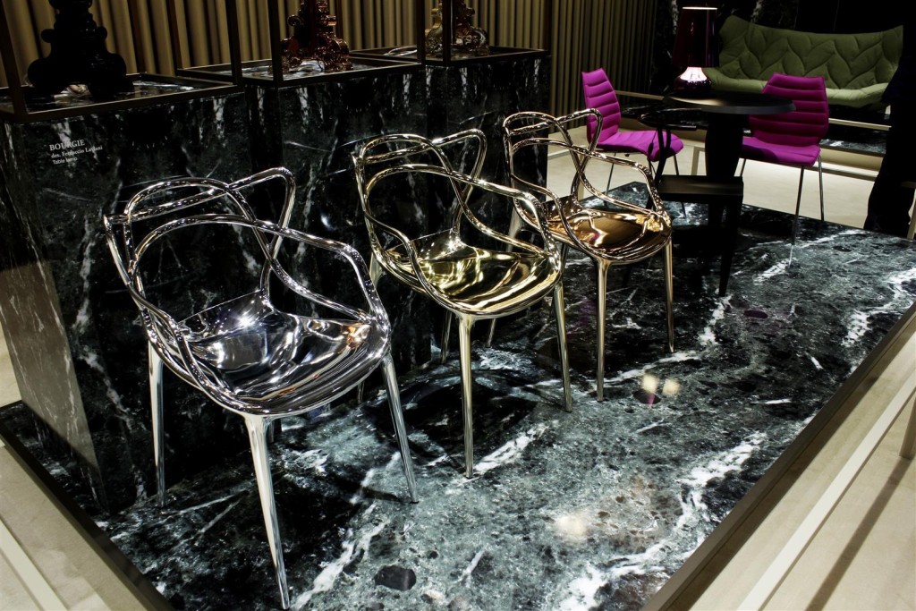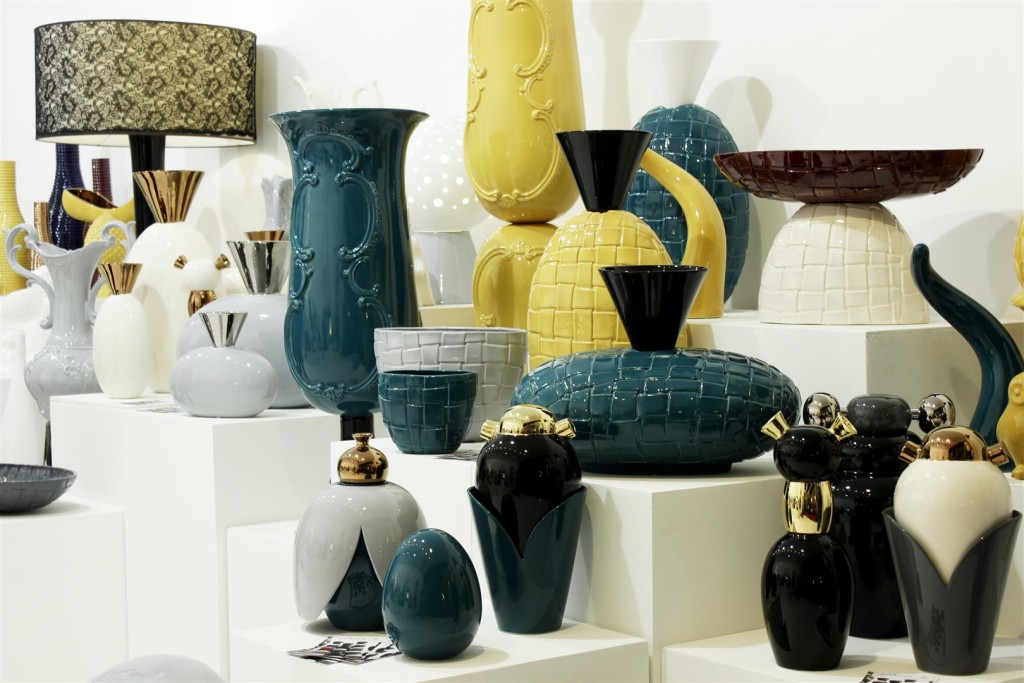 Anche in questo caso, le proposte sono varie e disparate: si passa dal legno, grande protagonista della sezione Design, al metallo, per i pezzi urban chic; vetro e luci ampliano il concetto di moderno, così come i materiali laccati. Anche le materie plastiche, proposte in colori brillanti, sono presenti soprattutto per quanto riguarda i complementi pop. Ma non dimentichiamo i materiali più classici, come il velluto e la pelle, che rimangono un trend evergreen in questa parte del Salone.