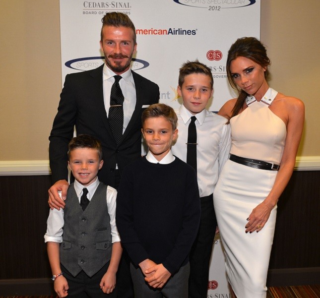 E come non considerare le celebrità hollywoodiane colte nei momenti privati come in quelli pubblici? Una delle coppie più in vista dello star system è anche quella con la famiglia più numerosa: i Beckham hanno messo al mondo quattro splendidi figli, Cruz, Romeo, Brooklyn e la bellissima Harper Seven. Insieme sono apparsi su alcuni red carpet in occasione di prime cinematografiche ed eventi benefici, mentre di recente abbiamo visto Cruz e Romeo insieme al papà ricoperti d’oro ai Nickelodeon Kids’ Choice Sports Awards di Los Angeles: all’evento che premia le scelte sportive dei giovanissimi, un gavettone di vernice dorata ha ricoperto interamente il calciatore e i figli sul palco.
