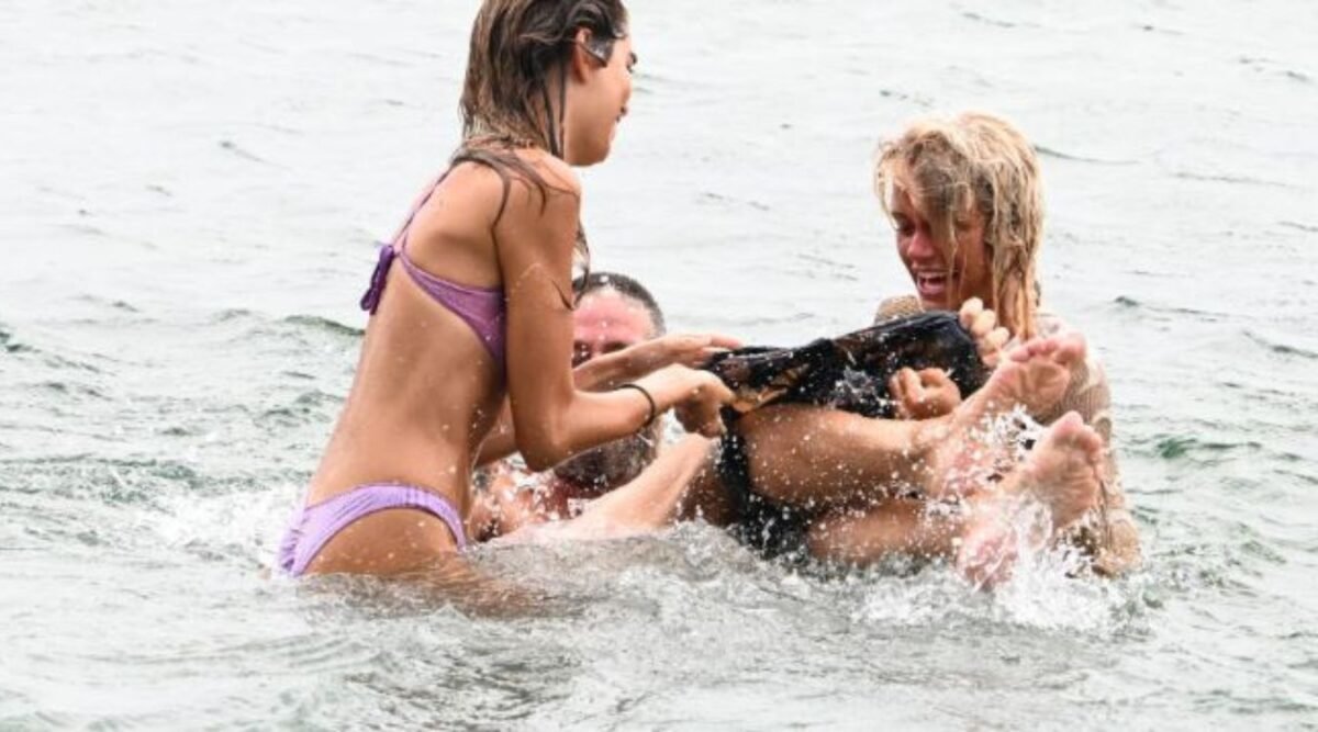 Mentre si trovavano in mare, Edoardo è stato accerchiato da Mercedesz e da Estefania. Le due naufraghe hanno scherzato con lui, fino al momento in cui sono riuscite ad immobilizzarlo e a sfilargli il costume, lanciandolo poi in aria. Ed ecco che Edoardo, coperto quasi completamente dall’acqua per sua fortuna, è rimasto nudo.