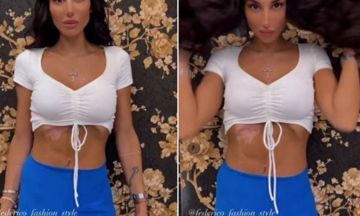 Patrizia Bonetti, infatti, ha fatto vedere il suo outfit per la serata, con un paio di pantaloni blu a vita bassa e un top bianco che ha messo in evidenzia il suo addominali e il suo fisico scolpito, ma soprattutto la pelle più chiara in determinati punti della pancia. L’influencer, anche per il fatto di essere stata all’Isola dei Famosi, è abbronzatissima, ma ci sono dei punti in cui si vede con chiarezza che ci sono delle cicatrici.