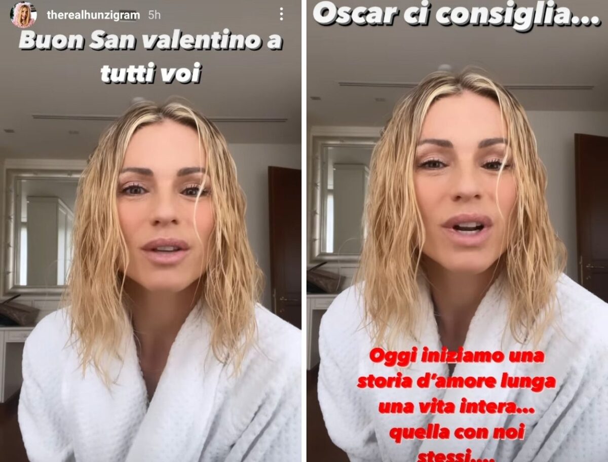 La conduttrice, su Instagram, ha utilizzato l’ironia che sempre la contraddistingue e, parlando di San Valentino, ha fatto un augurio non solo ai suoi followers ma anche a sé stessa. Come se parlasse allo specchio, infatti, Michelle Hunziker ha detto, mostrandosi con i capelli bagnati e con l’accappatoio addosso: