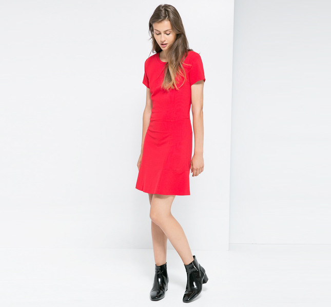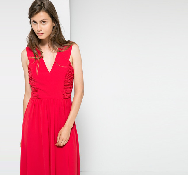 Rosso rubino per l'abito con inserti in velluto firmato Patrizia Pepe