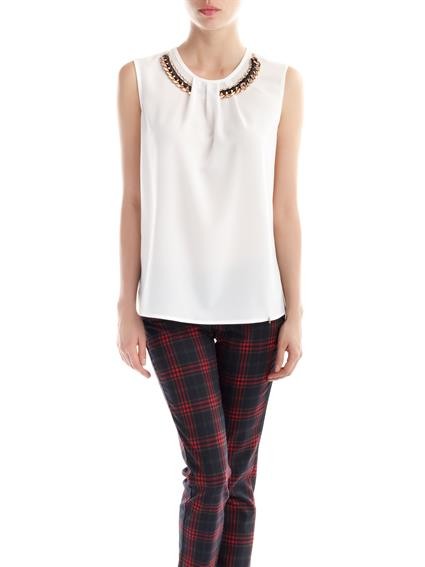 Per quanto riguarda la parte superiore, resta sul semplice ed abbina la tua gonna o pantalone a top o camicette in tinta unita con dettagli shine: un top con applicazioni sul colletto o una blusa ricamata saranno il complemento perfetto.