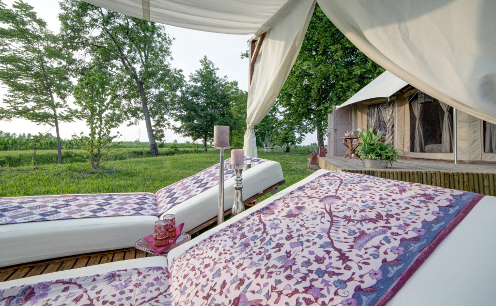 Ricordano le tende berbere gli alloggi di questo luogo ma con un tocco di lusso ad altissimo livello. Location a parte, si è nei pressi di Venezia con il Glamping Canonici S. Marco e già solo questo gli conferisce qualità da sogno. Atmosfere preziose con tocchi orientali per una location dove se si giunge in treno o aereo si viene coccolati già all’arrivo. Un loro autista viene a prendere gli ospiti e li accompagna al glamping… so chic!