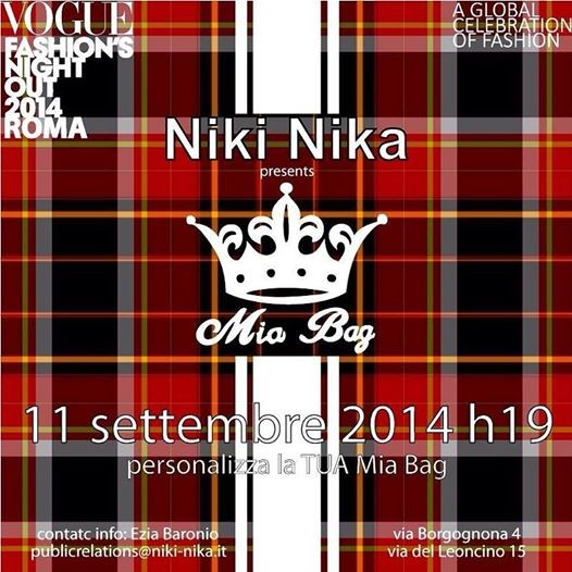 Se volete scoprire la nuova collezione Miabag non perdetevi il party di Nika Nika, in via Borgognona 4, con aperitivo, musica e tanti ospiti. Per le appassionate del brand invece Mango ha organizzato in Via del Corso 170-17, una serata speciale con uno sconto del 20% sulla nuova collezione autunno/inverno 2014.