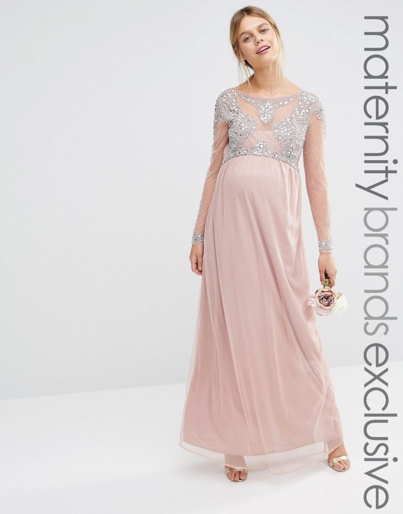 Raffinato. Da un’idea di Maya Maternity bellissimo corpino decorato su abito lungo.