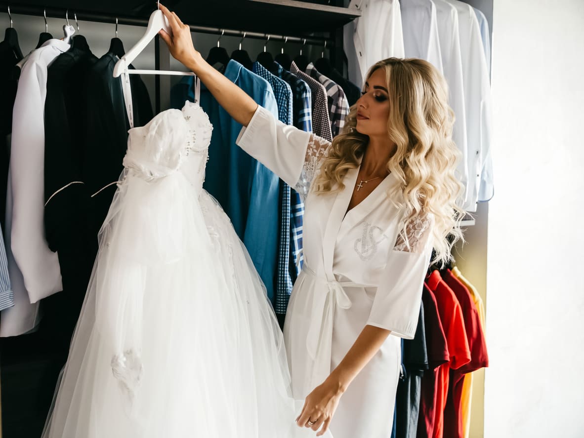 Appendete l’abito nuziale fuori dall’armadio e riponete nelle vicinanze tutti gli accessori correlati, che dovrete indossare alle nozze: scarpe, intimo, collana e orecchini. Prendete una borsetta e mettete dentro il portafoglio con i documenti, per ogni evenienza; un pacco di fazzoletti, non si può mai sapere, l’emozione gioca spesso brutti scherzi e infine rossetto e fard per qualche ritocco durante la cerimonia. Preparate in una busta a parte un paio di scarpe comode, che potranno servirvi durante il banchetto, se quelle bianche dovessero andarvi scomode. Consegnate tutto a mamma o alla damigella, provvederanno loro a portarle con sé e quando ne avrete bisogno saprete a chi rivolgervi.