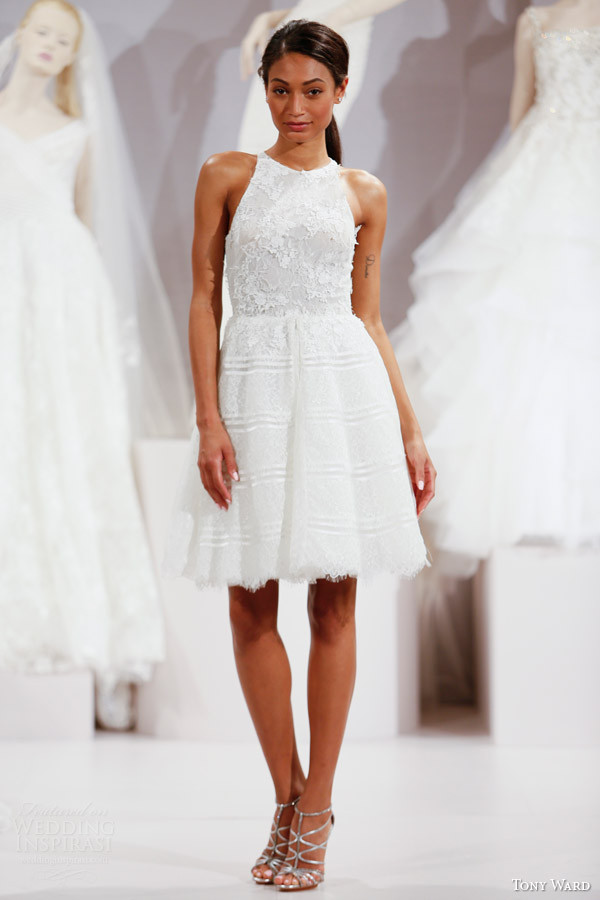 Ward si diverte inoltre a creare vestiti da sposa lunghi e corti dalle geometrie proporzionate e ben definite, che traggono ispirazione da un’elegante rivisitazione del design floreale.
