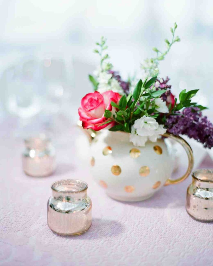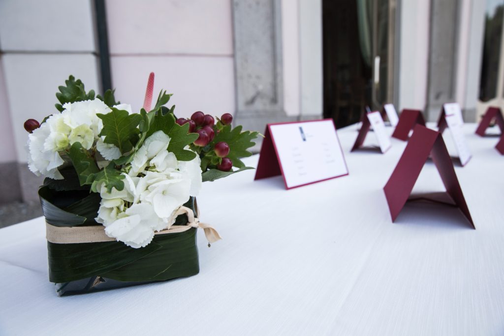 Se si sceglie questo tipo di centrotavola si può creare un fil rouge con il tema del matrimonio e il Tableaux de Mariage. Ad esempio con i libri, bellissimi quelli in stile vintage, o con i dischi in vinile. Altri oggetti da utilizzare, con o senza fiori, sono i servizi da tè in porcellana, le lanterne, oppure bellissime conchiglie che richiamano il tema marino o profumate pigne dorate perfette se le nozze si svolgono nel periodo natalizio.