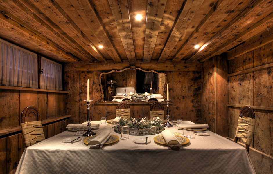 Partendo dalla gentilezza e disponibilità della famiglia Costa e del suo staff  è possibile usufruire di una serie di spazi bellissimi all’interno dell’hotel, primo fra tutti il romantico ristorante stellato La Stüa de Michil. La sala camino è perfetta per accogliere i ricevimenti più eleganti e sofisticati con il calore del fuoco e le mille e frizzanti bollicine di champagne. Bellissimi centrotavola e composizioni floreali realizzate dal floral designer della casa, trasformano questa dimora magica in una splendida fiaba.