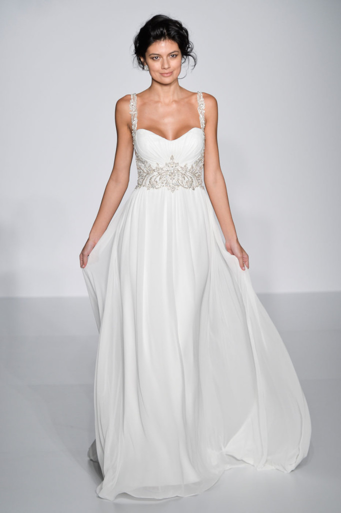 Uno stile soffice e melodioso quello adottato nella collezione 2016 da Maggie Sottero,  i suoi nuovi abiti da sposa mirano a risaltare la donna e la sua femminilità attraverso modelli dalle linee morbide e carezzevoli, o con abiti aderenti e brillanti che scivolano con naturale eleganza sul corpo disegnando sensualmente la figura.