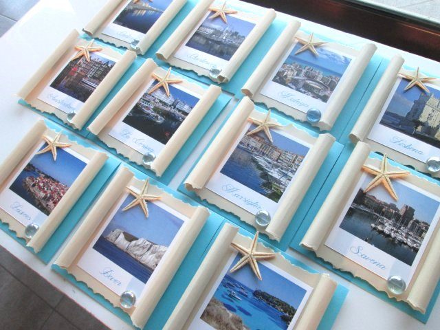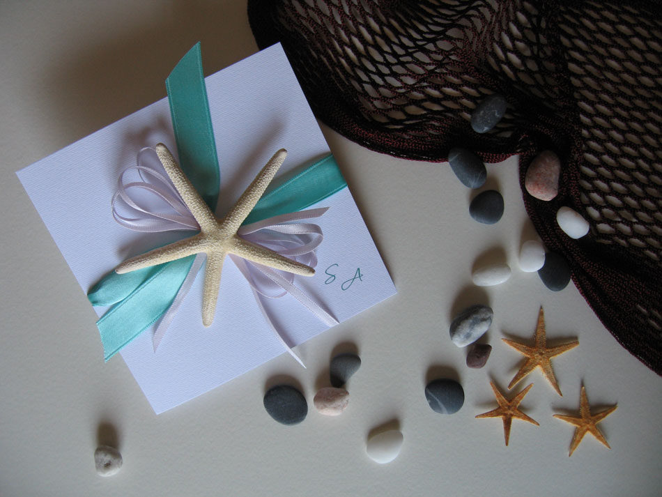 Anche le partecipazioni in un matrimonio a tema mare sono importanti e non devono essere lasciate al caso. In questo caso devono essere richiami al mare, nei colori con le sue sfumature dal blu all’azzurro, e negli stelle marine, conchiglie, cavallucci marini, perle e così via!