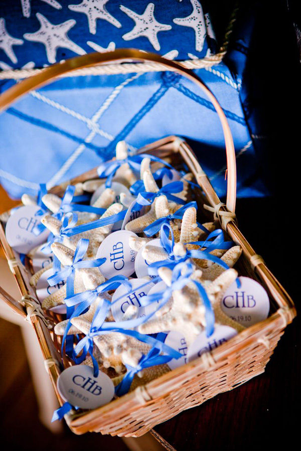 Infine potete introdurre anche nei vostri abiti un elemento marinaro: ad esempio la sposa potrebbe applicare una stella marina come fermaglio tra i capelli e un cordoncino annodato come fiore all’occhiello per lo sposo.
