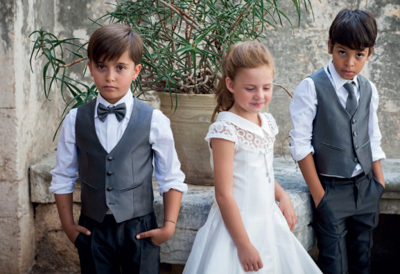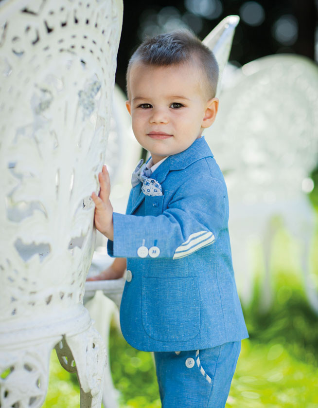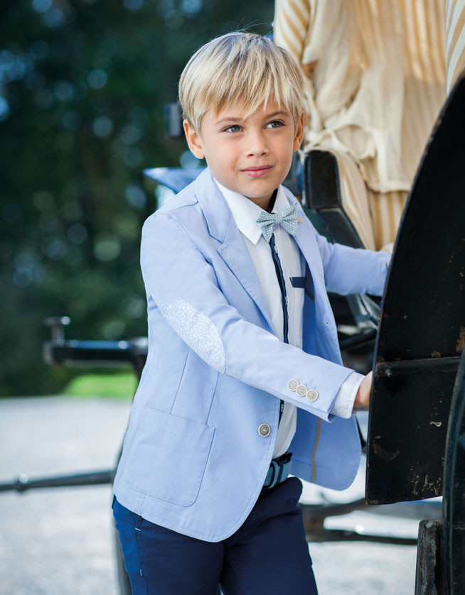 Per i pantaloni si può optare per quelli lunghi o corti stile inglese in fresco di lana o vigogna, la camicia preferibile con bordature in corrispondenza del colletto, mentre per le scarpe puntare sul classico stringato, l’importante che siano modelli morbidi e comodi per far correre liberamente e giocare con gli altri bimbi.