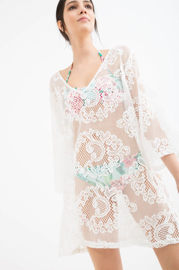Pizzo mon amour. Tra il vedo e il non vedo, con il caftano di pizzo per prendere l’aperitivo al bar della spiaggia. Rimini come Hollywood.