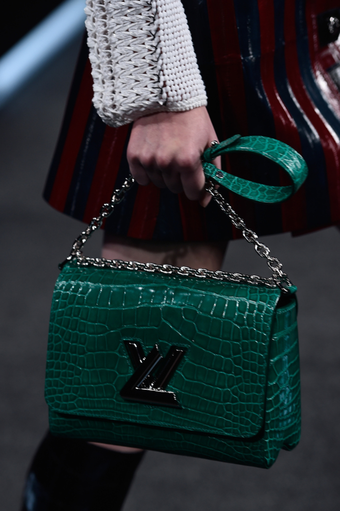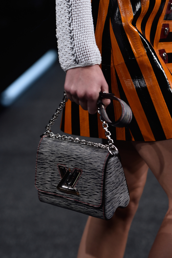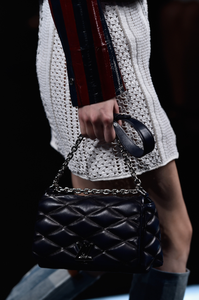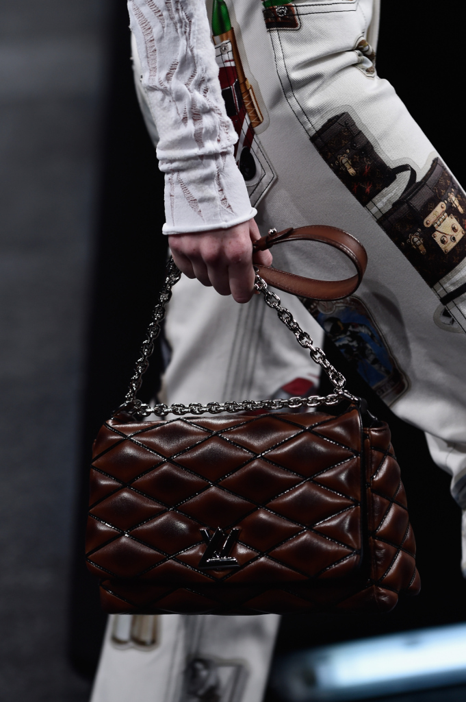 In passerella compare una nuova versione dello storico monogramma Louis Vuitton creato dallo stilista della casa di moda per le borse più particolari della nuova linea.