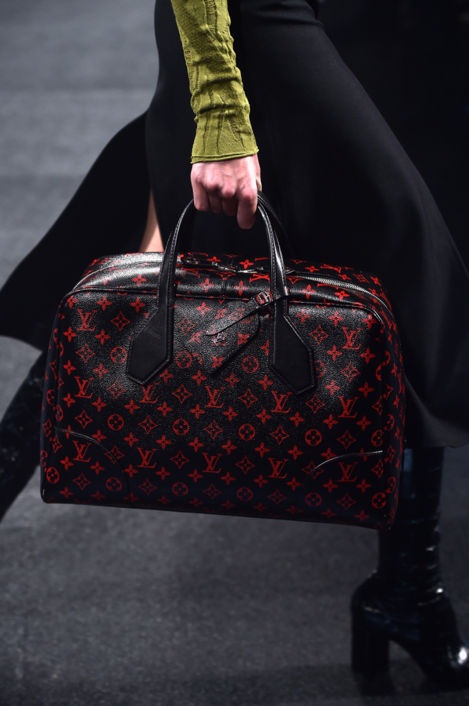 Il pattern Louis Vuitton storico è stato visto sfilare sulla passerella anch’esso rinnovato: non più nel classico beige e marrone, simbolo della casa Vuitton, ma in nero e rosso, quasi un occhiolino alla Cina, sempre più presente nei mercati occidentali.