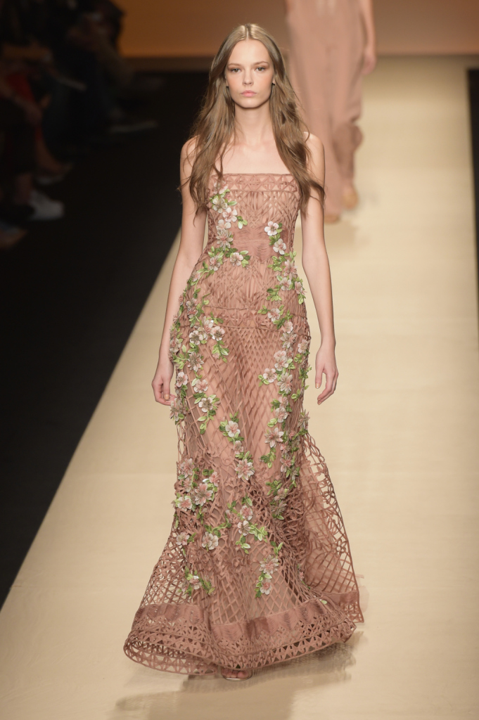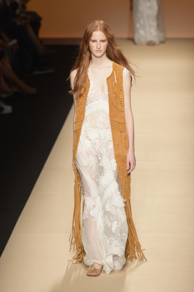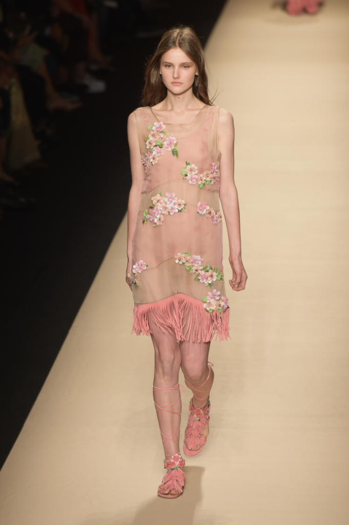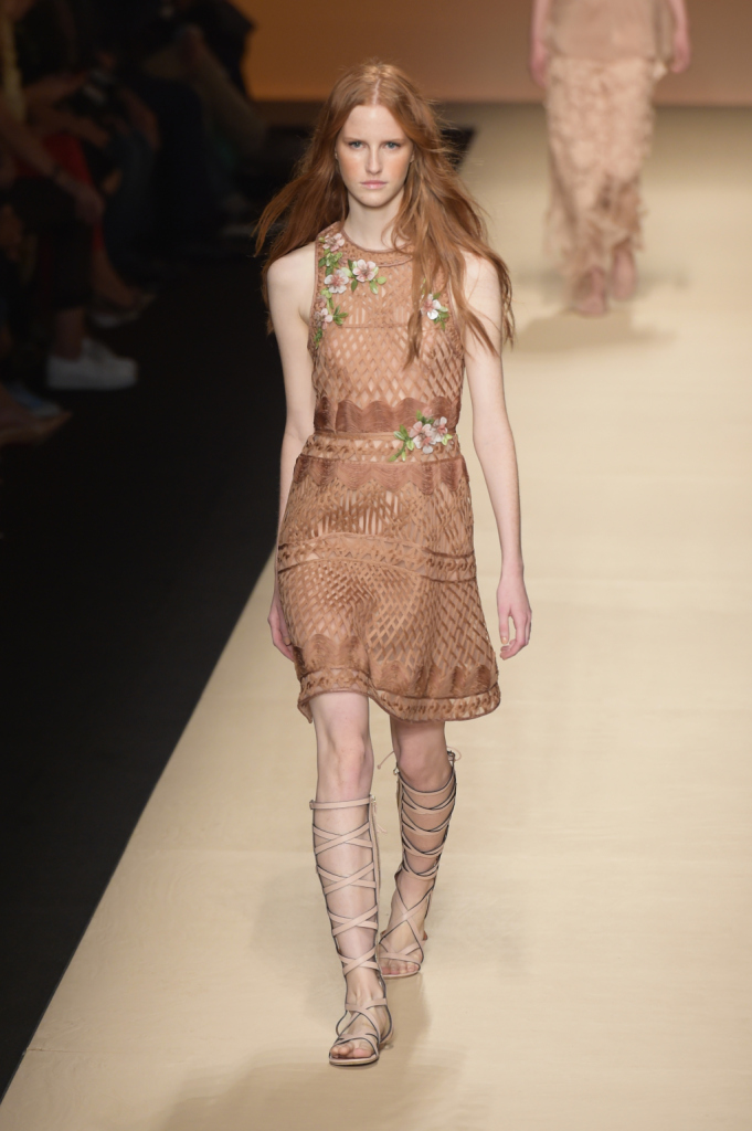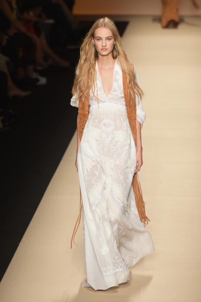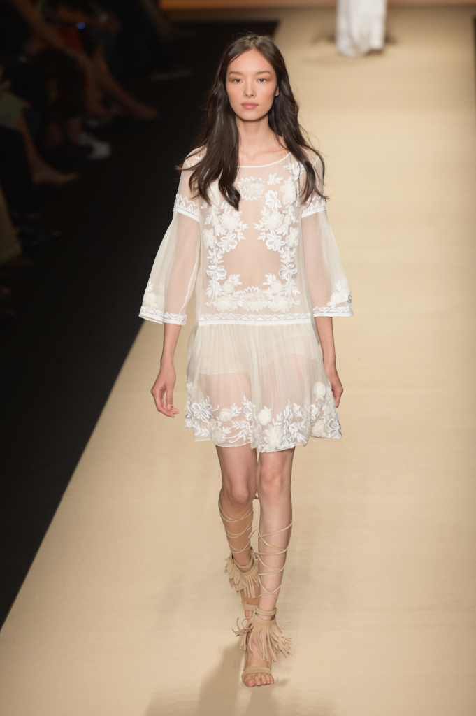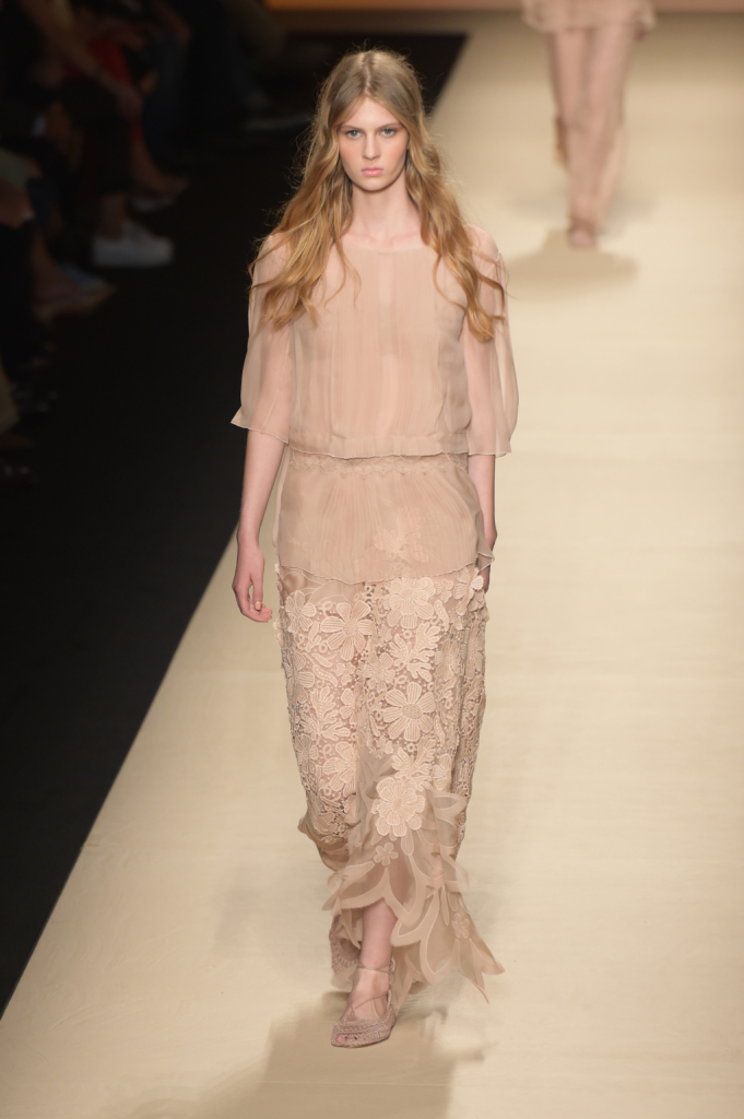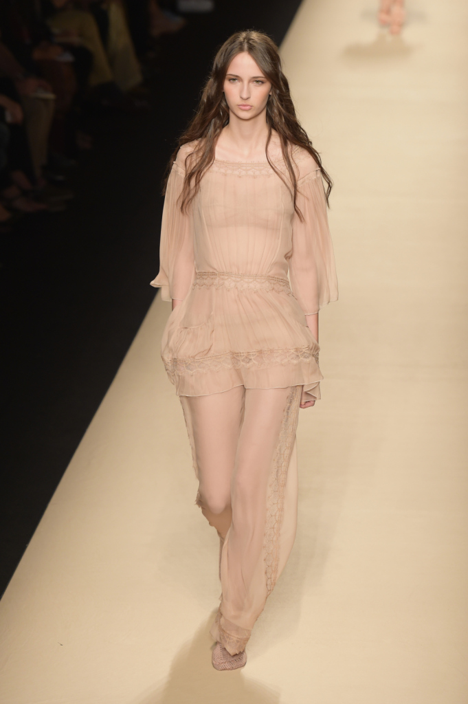 Tessuti leggeri, colori romantici, sensuali trasparenze in un gioco delicato di fiori e pizzi: la collezione primavera/estate 2015 Alberta Ferretti tra l’etereo e il boho-chic.