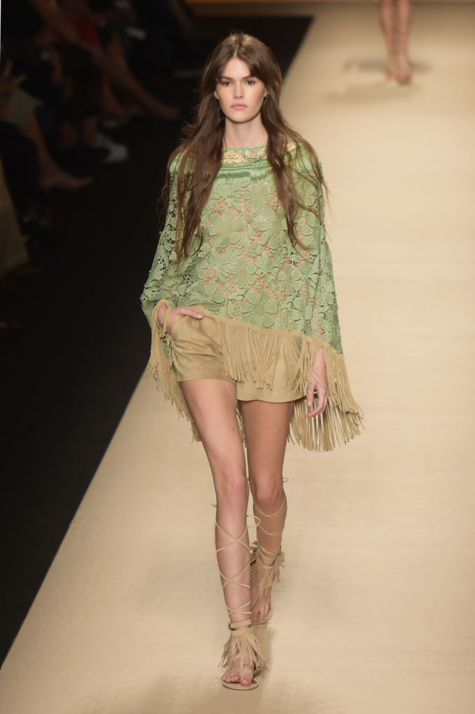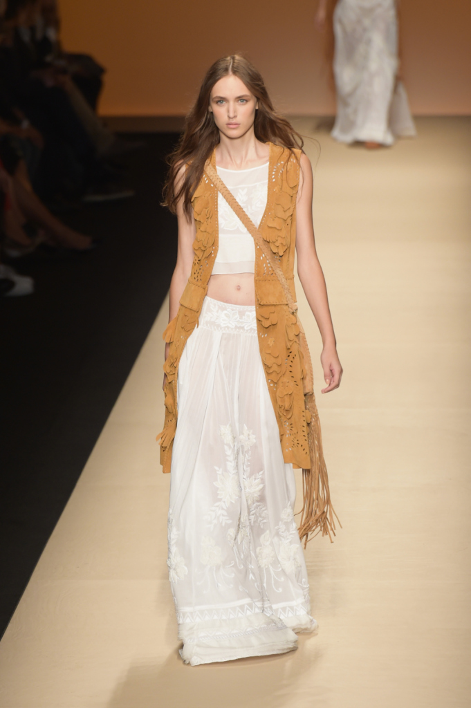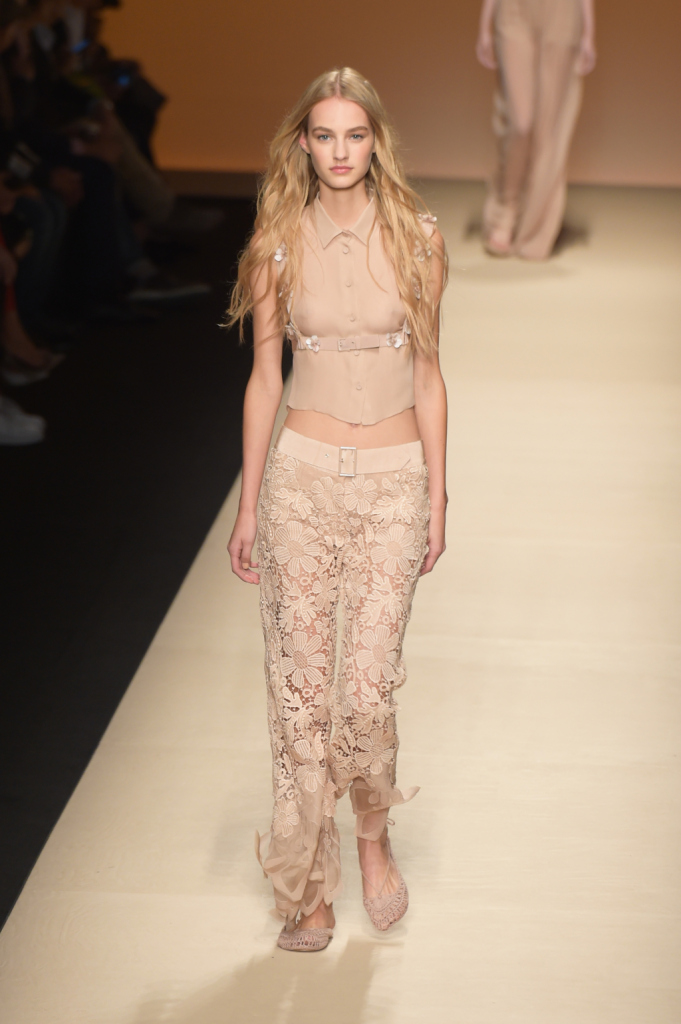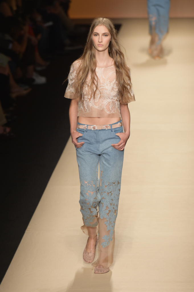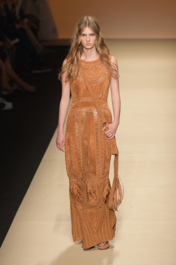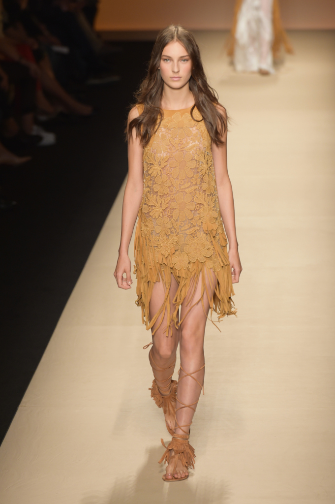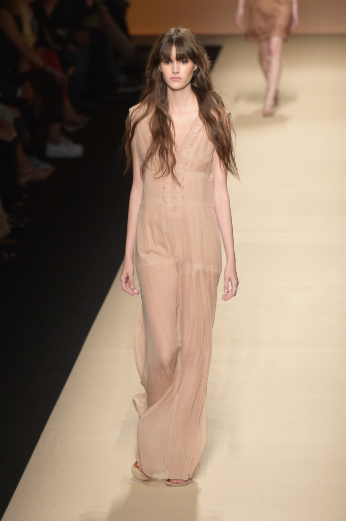 Tessuti leggeri, colori romantici, sensuali trasparenze in un gioco delicato di fiori e pizzi: la collezione primavera/estate 2015 Alberta Ferretti tra l’etereo e il boho-chic.