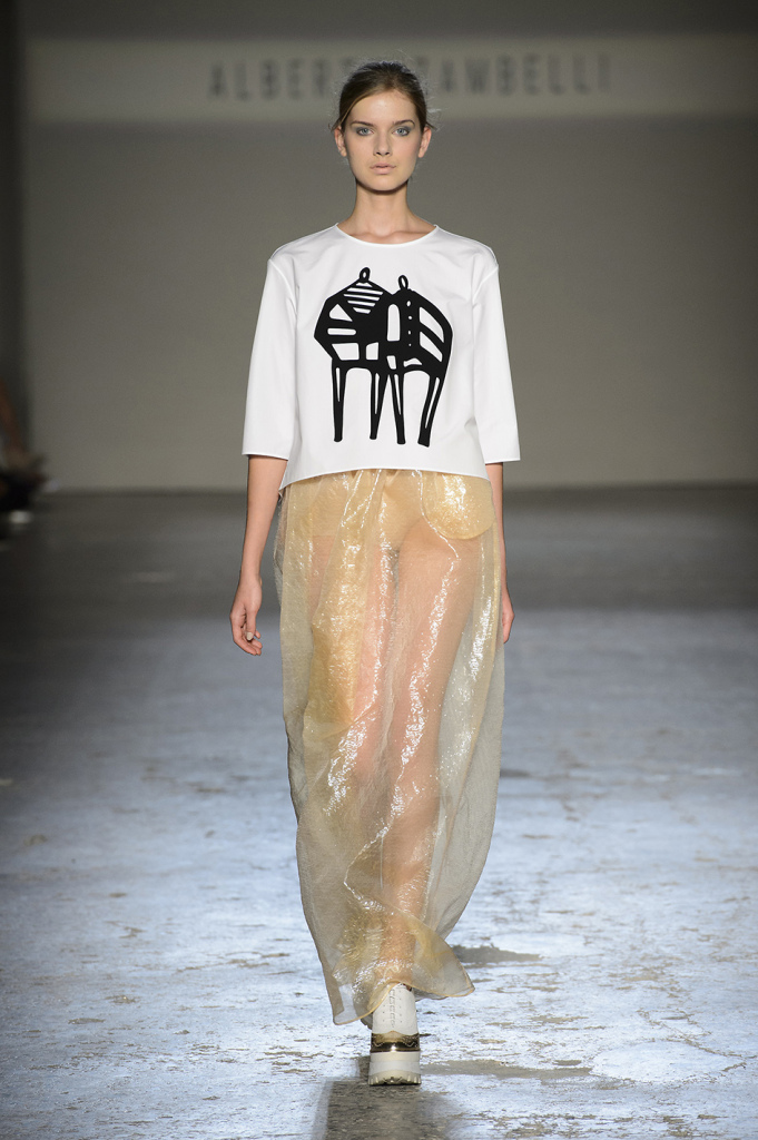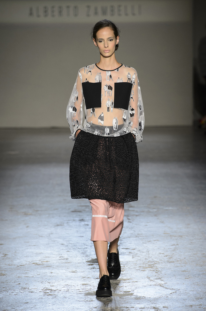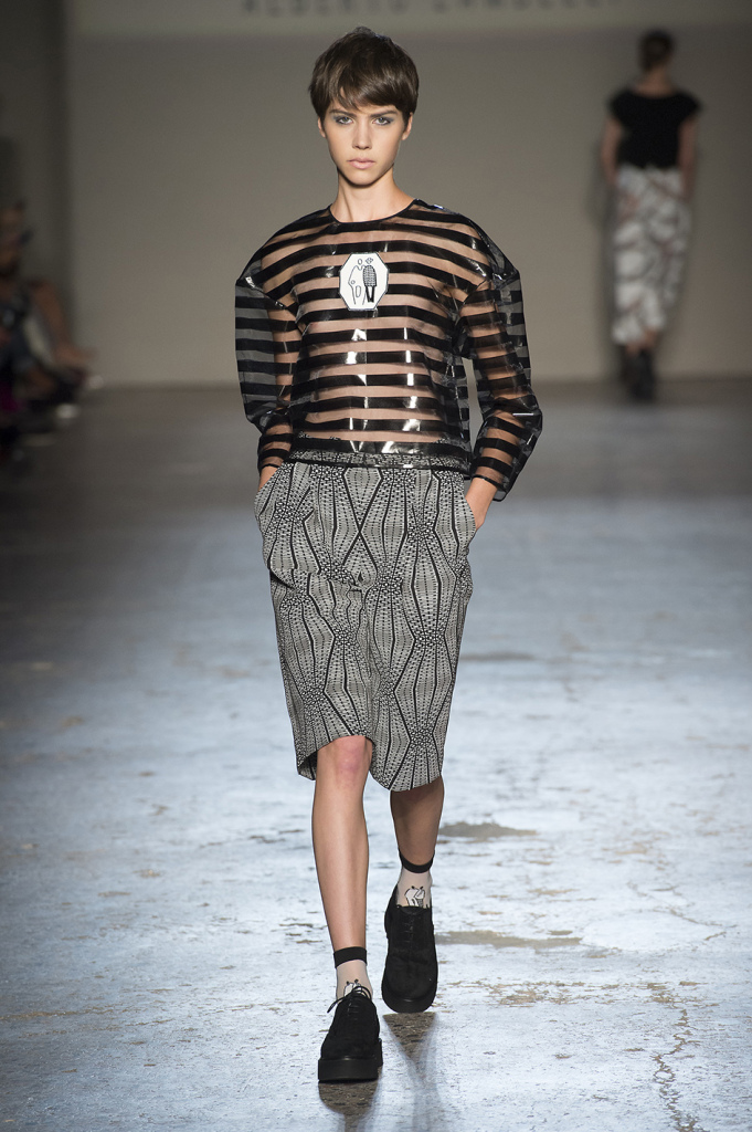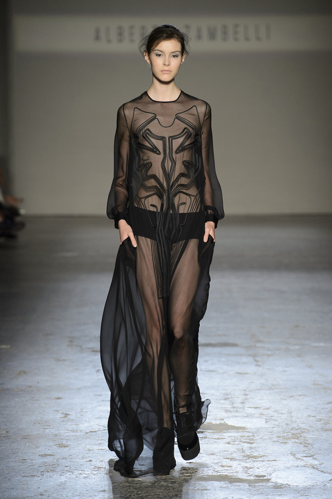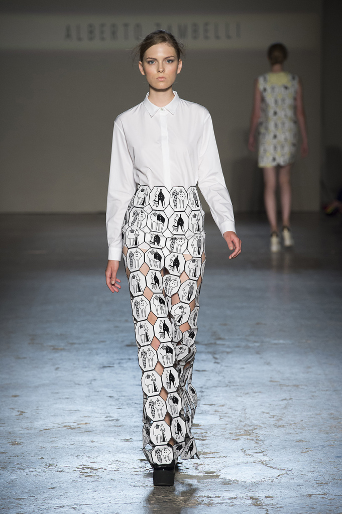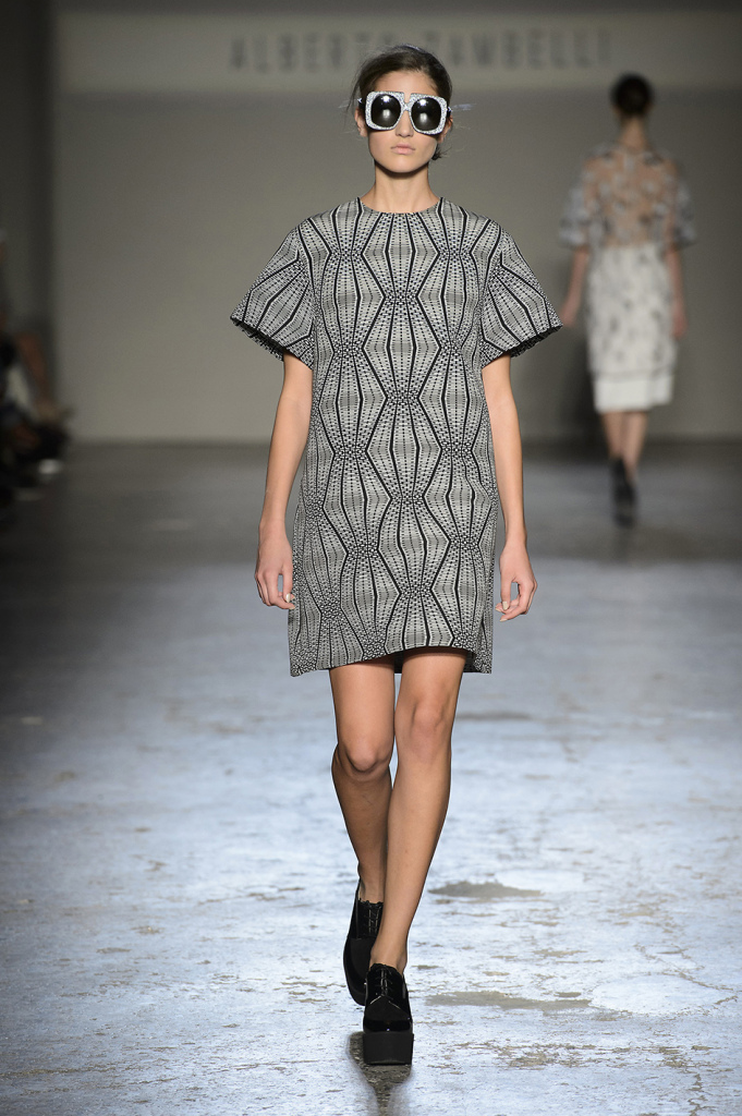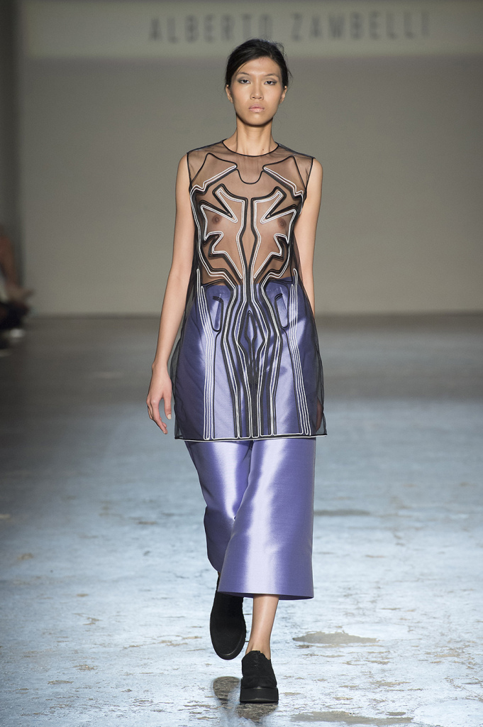 Geometrie e trasparenze alla sfilata S/S 2015 di Alberto Zambelli alla Milano Fashion Week