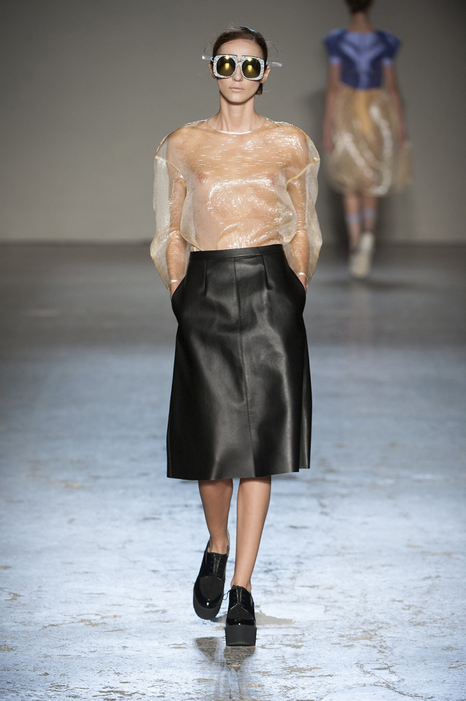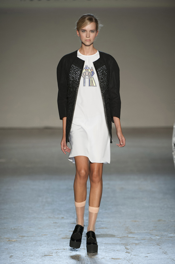 Una collezione deliziosamente pret-à-porter ma, al contempo, sofisticata e mai banale. Le silhouette allungate slanciano la figura femminile, la camicia bianca riacquista la sua naturale eleganza, trafori e trasparenze donano una femminilità assolutamente chic. Un lavoro sartoriale che parte dai capi classici come blazer, gonne longuette, abiti a trapezio e li rielabora. Un gioco di materiali e volumi che regala una nuova personalità ai capi, senza -al contempo- destrutturarli in maniera eccessiva rischiando di snaturarli. La geometria, le linee pulite, i rimandi alla moda di fine anni ’60, tengono in piedi il tutto con grande armonia.