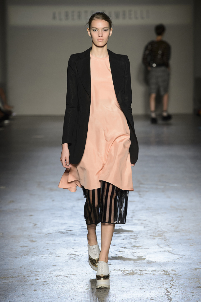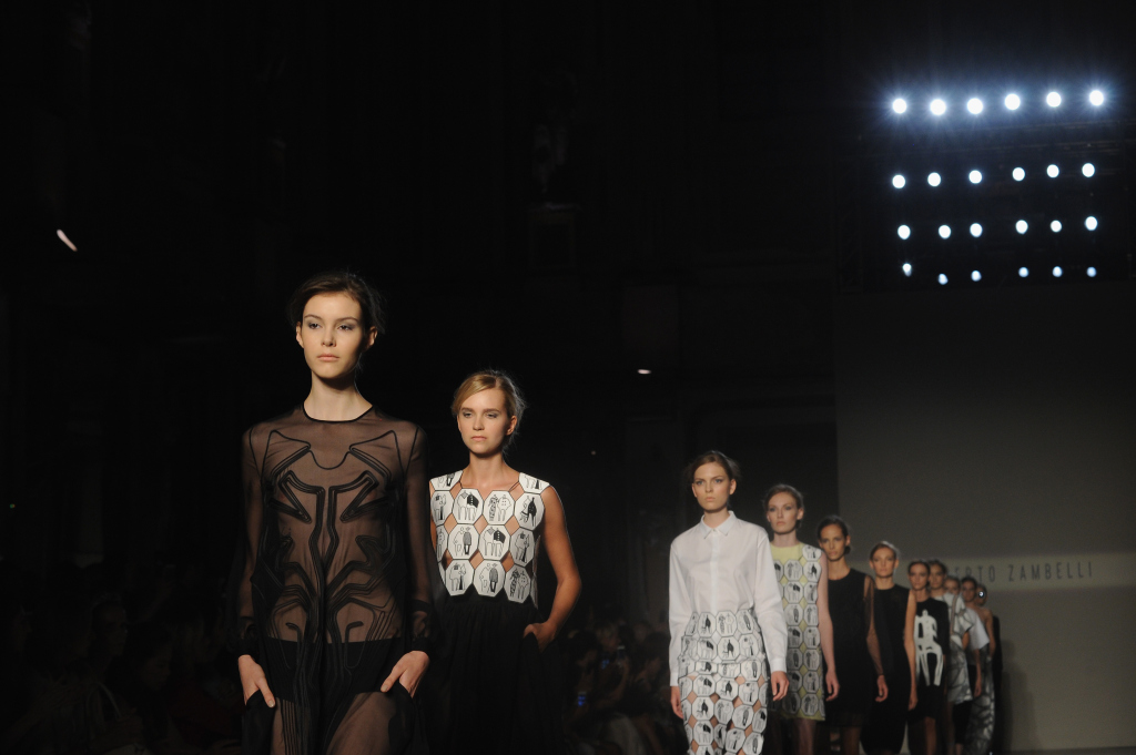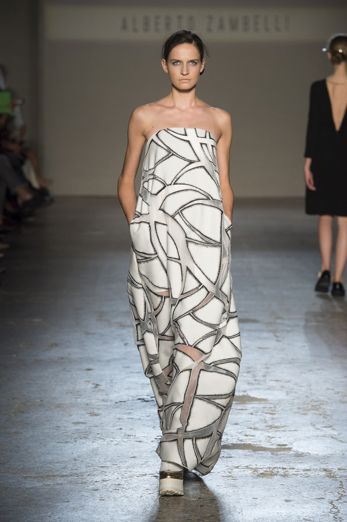 Alberto Zambelli chiude la Milano Fashion Week, presentando la sua collezione primavera-estate 2015. Lo stilista bresciano, per la prima volta su questo palcoscenico, ha partecipato al progetto “N-U-D-E New Upcoming Designers” dedicato agli stilisti emergenti. Dopo aver conquistato l’Oriente, lavorando con successo tra Tokyo e Shangai, è stato accolto da applausi e critiche entusiaste anche a Milano.