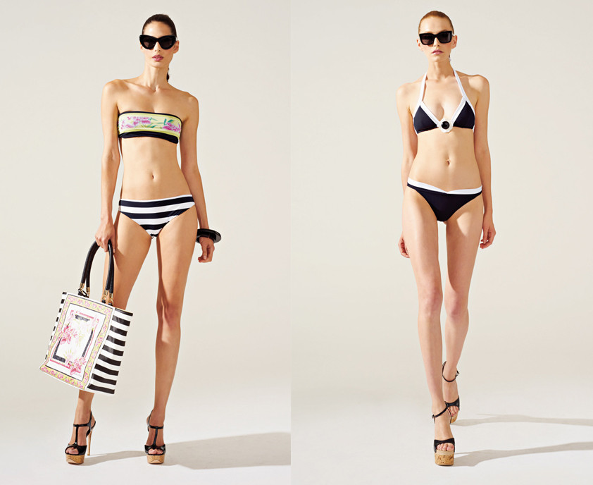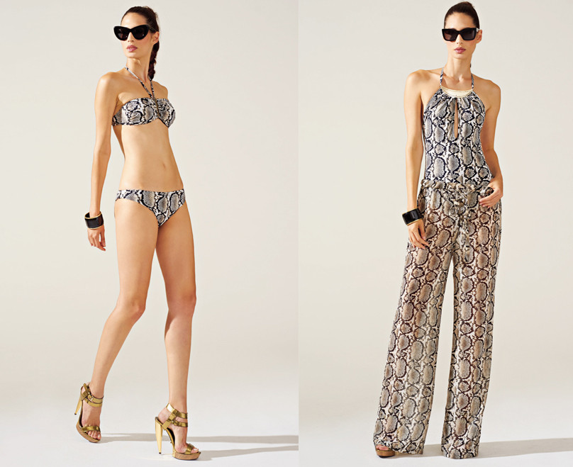 La collezione estiva si compone anche di un’edizione speciale dedicata alla moda mare con costumi e copricostume. I capi più particolari sono sempre in stile capri ma non mancano proposte in tema floreale dai colori vivaci. Per un look più aggressivo ma sempre elegante si può optare per lo stile animalier, quest’anno interpretato con stampa pitonata.