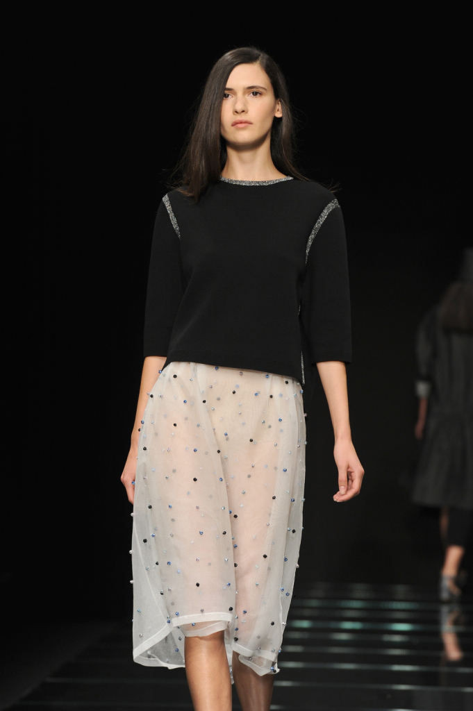 Cavalca duplicemente le tendenze finora viste in passerella durante questa Milano Moda Donna, giunta ormai agli sgoccioli, la sfilata della collezione primavera-estate 2015 Anteprima, firmata dalla designer Izumi Ogino.