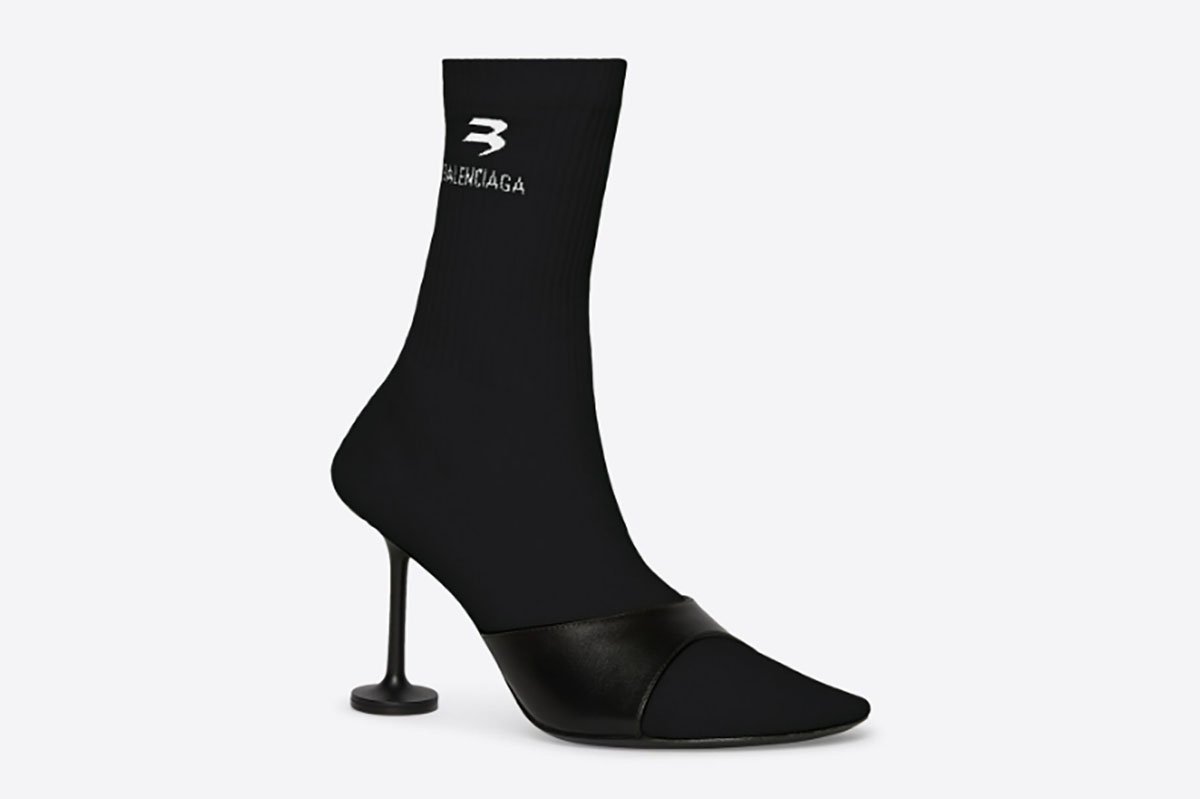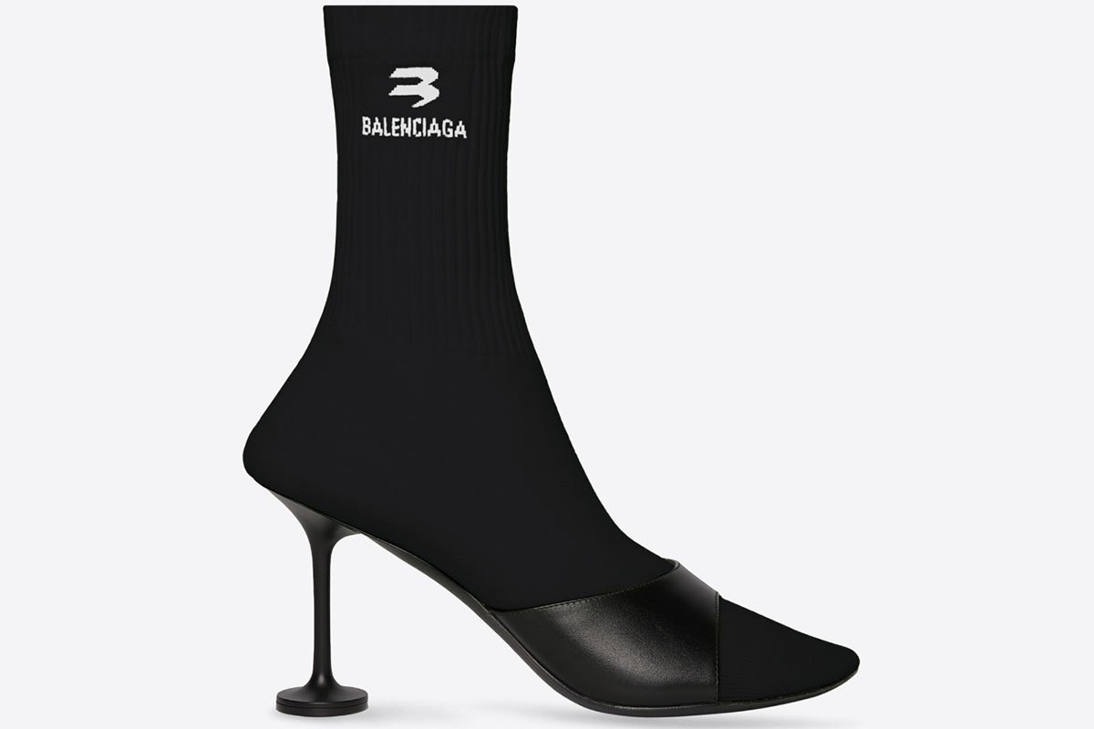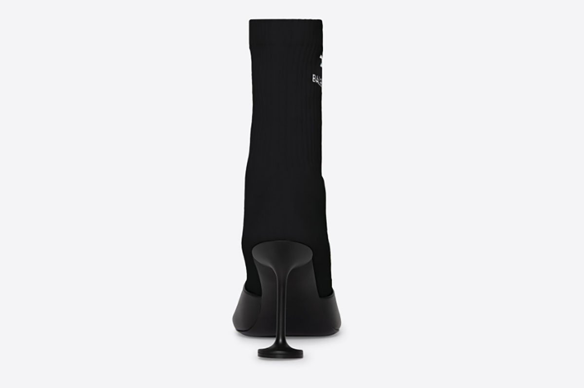 Gli stivaletti “effetto calzino” di Arisa sono metà in pelle di vitello nera e metà in maglia riciclata. Hanno la punta arrotondata, una finitura a coste, il logo Sporty B di Balenciaga sulla maglia esterna e il “tacco champagne” con una insolita base di appoggio circolare. Costano 1.150 euro e hanno subito attirato l’attenzione dei follower.