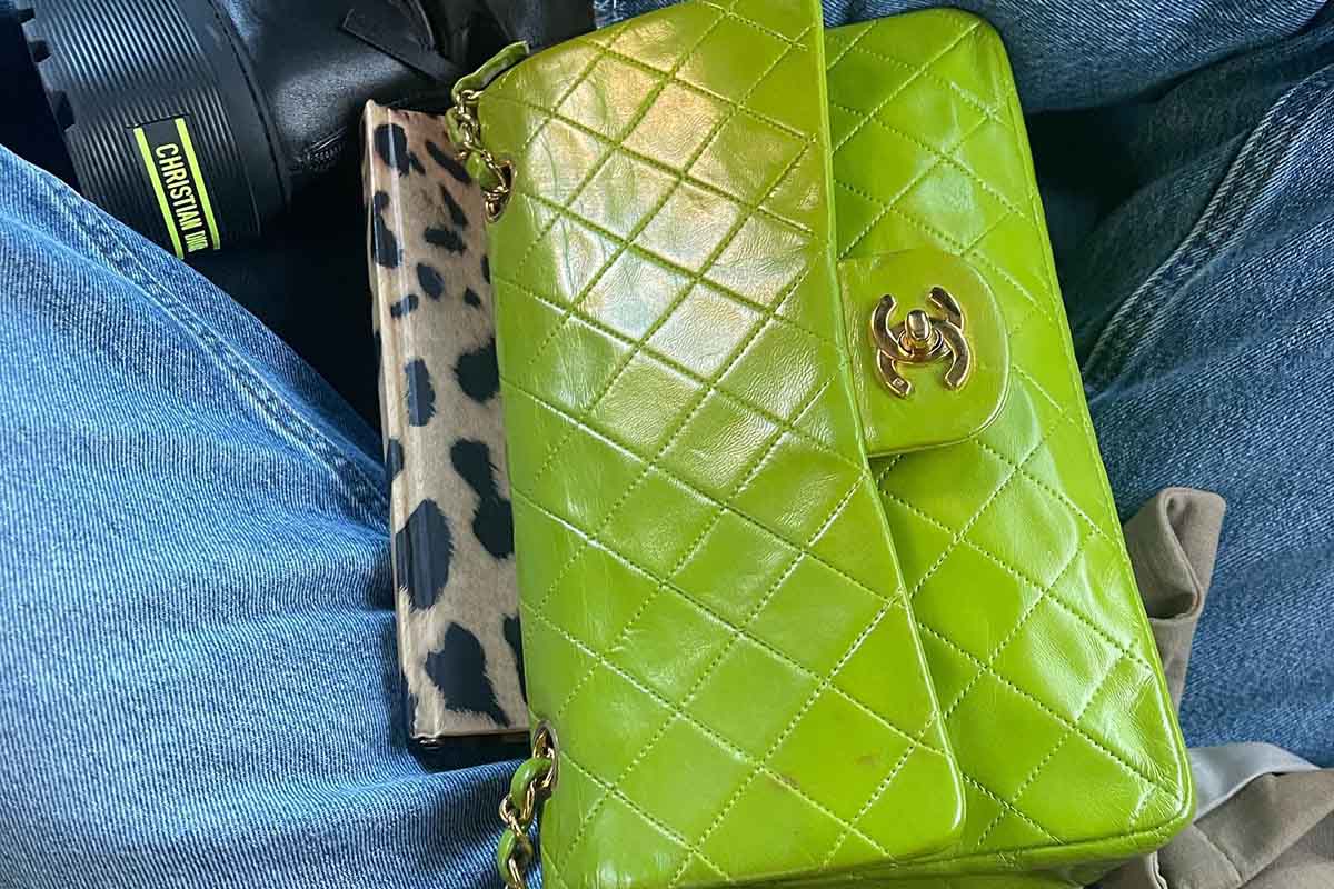 Il modello scelto da Belen Rodriguez è proprio l’originale. Lo si evince dal materiale in cui è realizzata la sua borsetta: pelle matelassé, una speciale lavorazione della pelle che non è più in uso da anni. Il verde è brillante e luminoso, esaltato dalla catena e dall’iconica chiusura CC in argento. Ci sono anche due macchioline: segno che è una borsetta che è stata molto vissuta. L’accessorio acquista così più valore e importanza, perché è davvero unico. Una borsetta così può essere indossata in qualsiasi occasione e con qualsiasi look. Belén ha scelto di abbinarla a jeans dal lavaggio chiaro, anfibi Dior e blazer oversize di The Row.