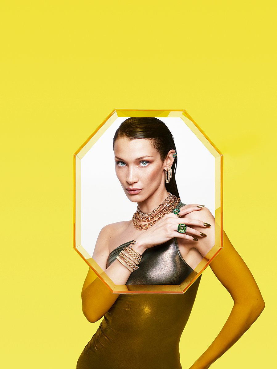 In effetti, l’approccio al vestire libero di Bella Hadid, che da sempre sfida i codici della tradizione, si sposa perfettamente con la poliedricità dei cristalli, che nei sei ritratti realizzati dai fotografi Mert Alas e Marcus Piggott diventano simbolo di un’eleganza moderna, non più riservati alle occasioni speciali ma adatti anche al guardaroba di tutti i giorni.