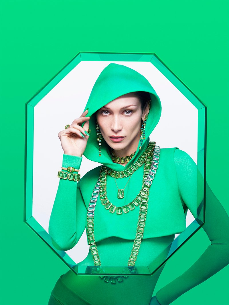 “Bella Hadid rappresenta il carattere individualistico e trasformista della nuova generazione a livello globale”, spiega Giovanna Engelbert, creative director di Swarovski, “è un personaggio dalle mille sfaccettature, che evade regole e conformità. Passa da uno stile sportivo a uno glamour, rimanendo sempre fedele a se stessa con sicurezza e autorità. In questo senso, rappresenta alla perfezione i valori di Swarovski. Oggi i cristalli sono la parte dinamica del nostro guardaroba: un modo per accentuare il proprio stile individuale, che può essere casual così come elaborato. Bella è la ‘poster girl’ di questa mentalità”.
