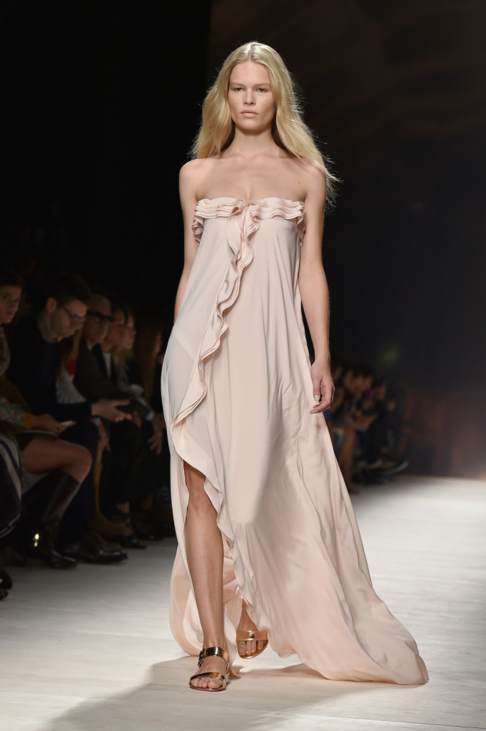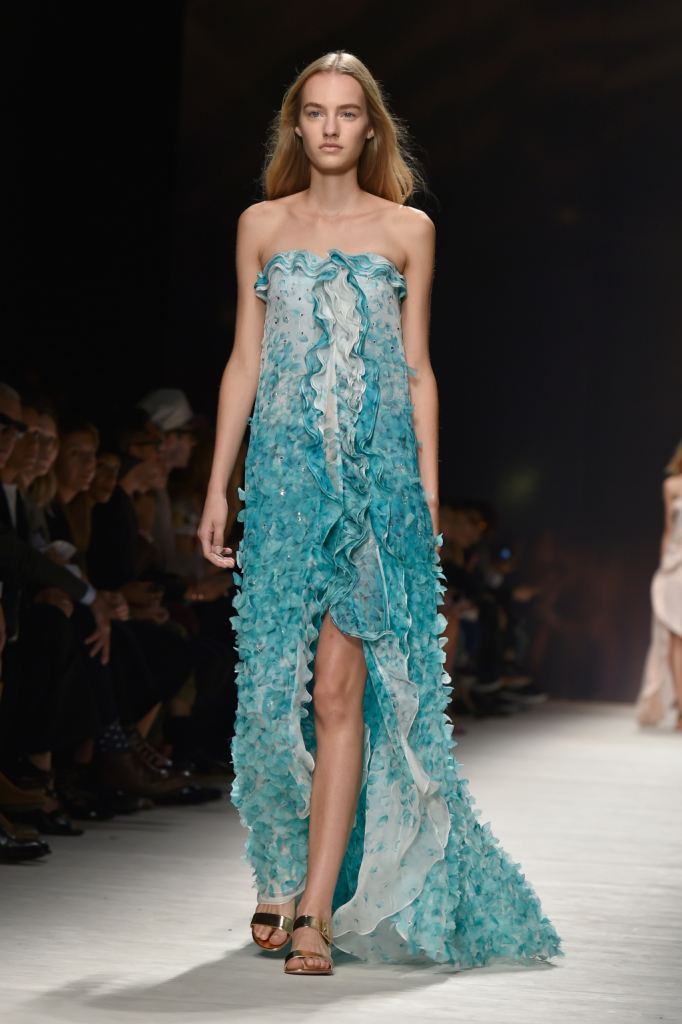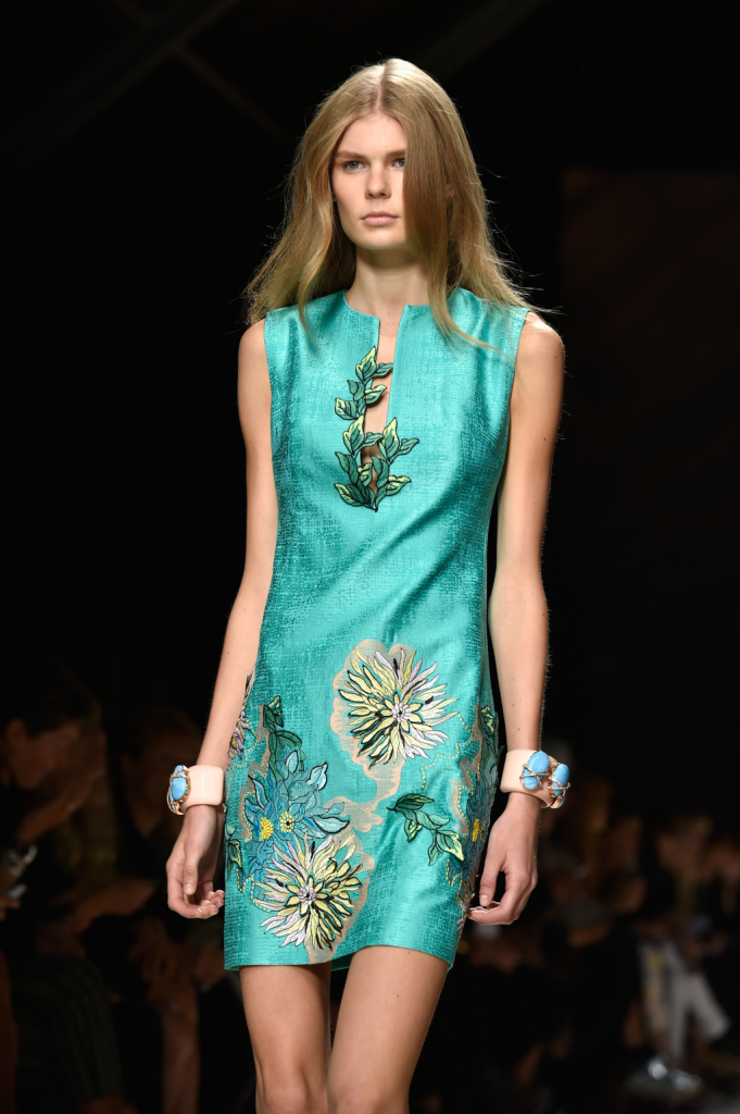 È un’assenza illustre a caratterizzare la collezione primavera-estate 2015 firmata Bluemarine e presentata alla settimana della moda di Milano: per la prossima bella stagione, addio pantaloni! È una ss 2015 di soli abiti quella disegnata da Anna Molinari – la designer che giusto ieri ha presentato l’altra linea della maison, Blugirl – che punta decisa su una femminilità leggera e fresca.