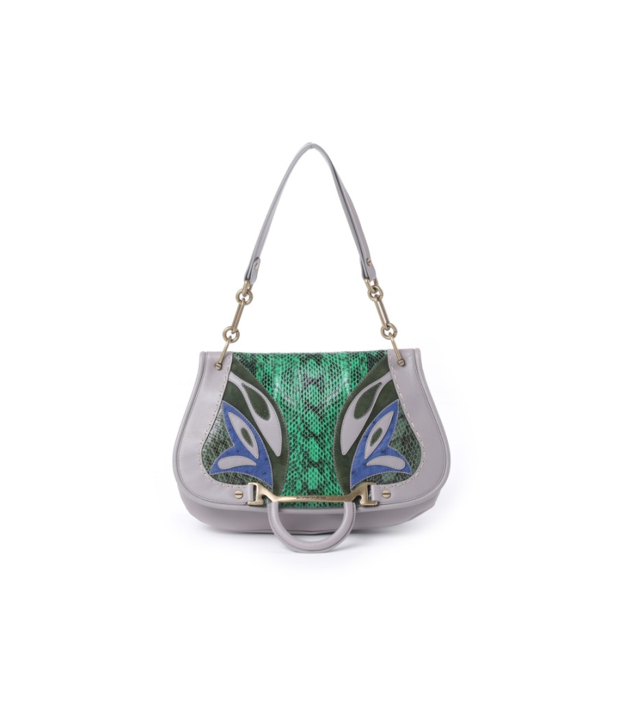 Novità in questa collezione è la “Lady Batterfly” in cui colori come il rosa ed il verde si mixano a meteriali come  pelle e pitone che nella patta frontale formano motivi che sembrano rappresentre appunto le ali di una farfalla. Tra le altre novità rientra la “Luna Bag“, anche questa declinata in diverse varianti, dalla shoulder bag con manico regolabile realizzate in pelle e Graffiti con zip, fino al classichio secchiello e al famoso hobo, modello realizzato in pelle dalla forma easy chic. Nella collezione primavera estate 2015 di Borbonese si respira uno stile minimal chic anche per le borse da giorno come le shopping bag e le handbag proposte con modelli a tracolla rimovibile o con doppio manico in versione liscia o con comode e pratiche tasche.  Tra le shopper molti sono i modelli verticali capienti e perfette da utilizzare durante la settimana lavorativa per riporre agende, portafogli, cellulari e documenti.