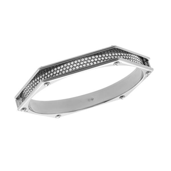 Anche per i bracciali, come per tutti gli altri monili della collezione A-I 2014-2015, Swarovski gioca a mescolare l’oro e l’argento, placcature diverse che creano un look moderno, originale e sofisticato. E’ il caso dei bracciali della linea Stone (99 euro), proposto in placcato oro rosa o giallo, elegante con pavé in cristallo disposto su quattro file, perfetto da solo o con altri bracciali rigidi per uno stile dal fascino contemporaneo. Originale la versione con il cordoncino in pelle intrecciata (79 euro). Stessa filosofia dei metalli combinati la ritroviamo nella linea Bolt (149 euro), altrettanto rigido ma con una forma geometrica. Anche questo in versione oro rosa e metallo. Addirittura si osa l’accostamento con la pelle nel bracciale della linea Bound (119 euro), proposto con due cinturini intercambiabili in vitello nero e in pelle tinta nudo, per trasformare il vostro stile in base all’occasione.