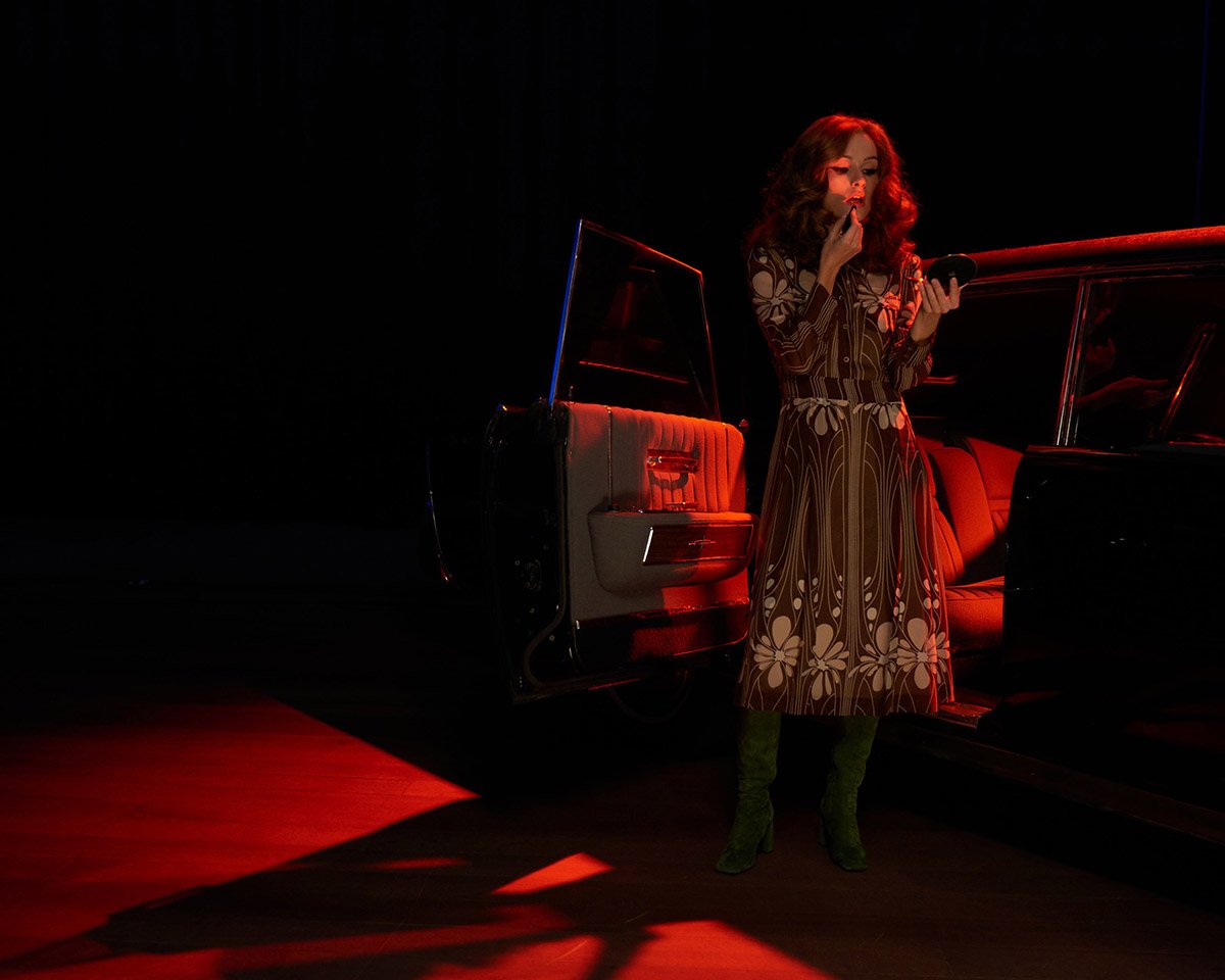 Insieme al look personalizzato per il personaggio di Elvis, un originale completo in kid mohair color prugna, questi costumi distillano l’essenza dei personaggi: le silhouette e le forme riconoscibili rimandano istantaneamente al passato e insieme appaiono contemporanei, a sottolineare la loro eterna attualità.