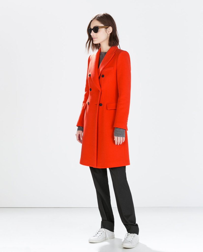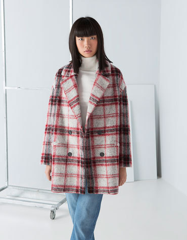 Il cappotto a quadri Pull and Bear, oversize naturalmente, e quello in fantasia tartan di Bershka. Tra le proposte colorate, il rosso di Fornarina e l’arancio di Zara.
