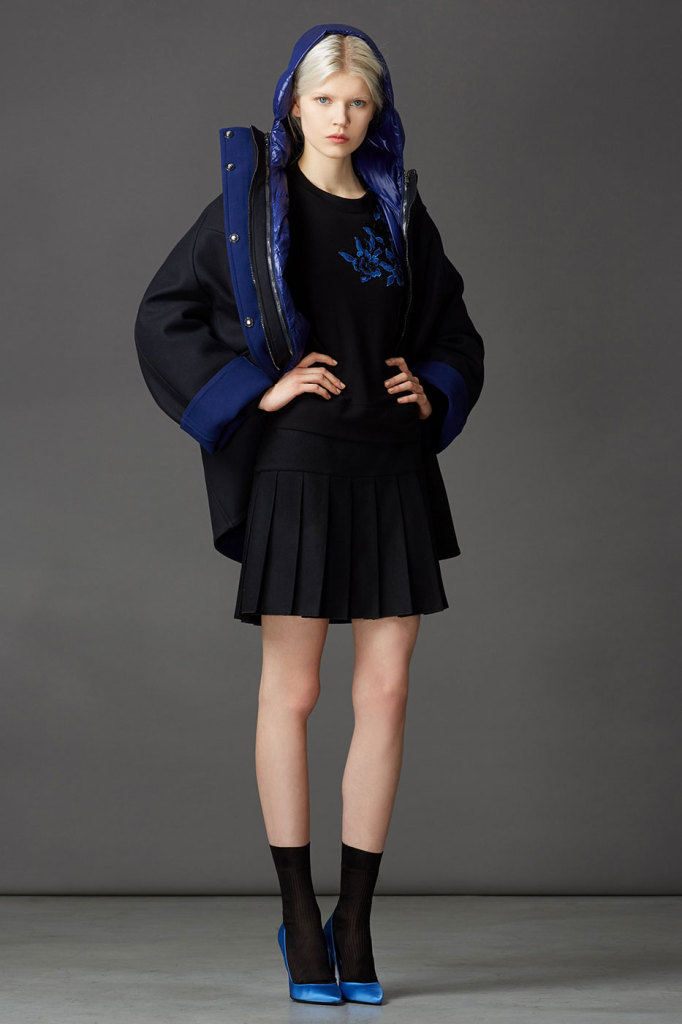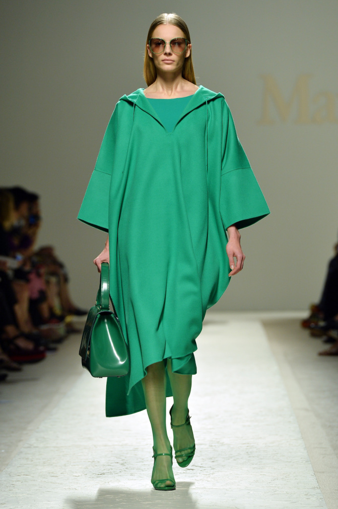 Prada, come la sua natura richiede, si discosta un po’ dalla direzione “tenue” e si muove al solito sullo stupore: i suoi cappotti sono eccentrici sin dalle colorazioni, viola e giallo si contendono la scena giocando di contrasto.