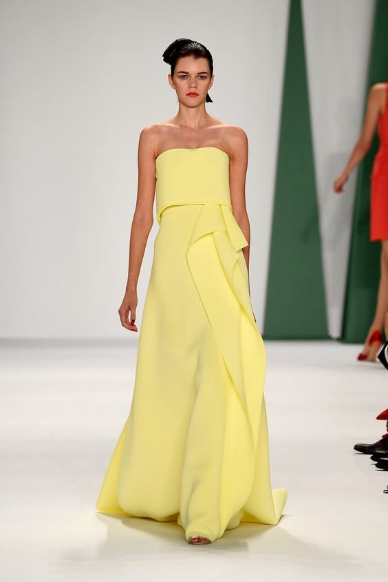Abito lungo color giallo limone, sfila alla NWFW per Carolina Herrera