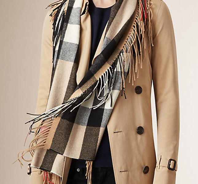 Imperdibile è la sciarpa a quadri firmata Burberry, perfetta da abbinare a un trench coat beige, maglione nero e pantalone slim tono su tono: un accessorio unico che completa in modo elegante il tuo outfit da ufficio.