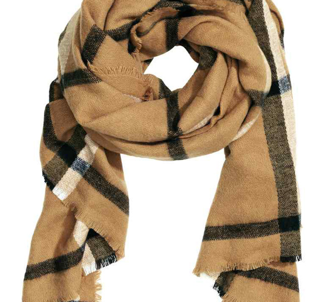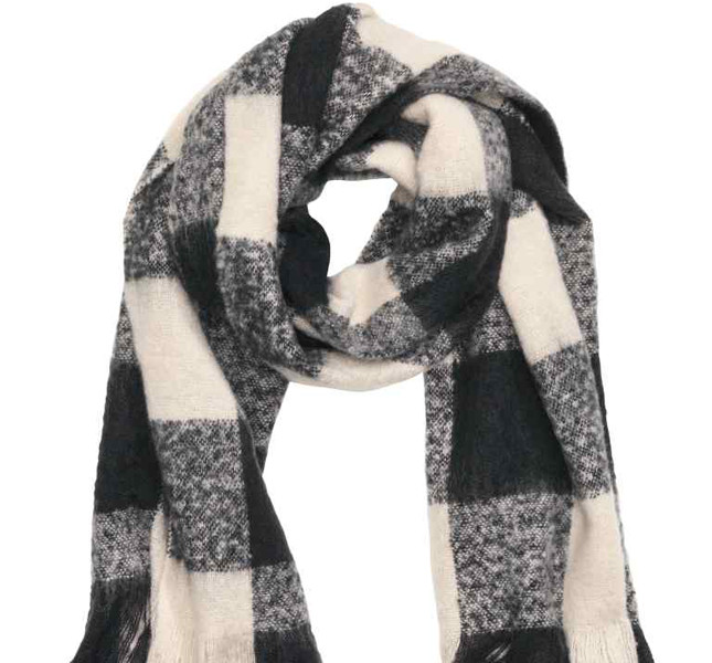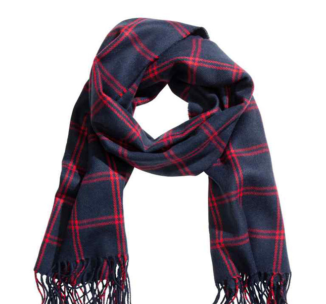 Non solo i capi d’abbigliamento ma anche gli accessori hanno ceduto alla fantasia check. Un esempio sono le maxi sciarpe H&M disponibili in due diverse tonalità: beige con quadri bianchi e neri che si sovrappongono e blu notte con maxi quadri rossi.