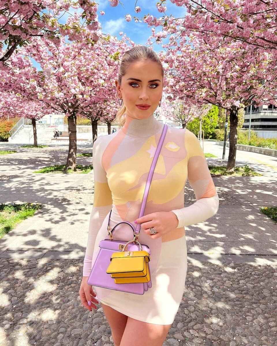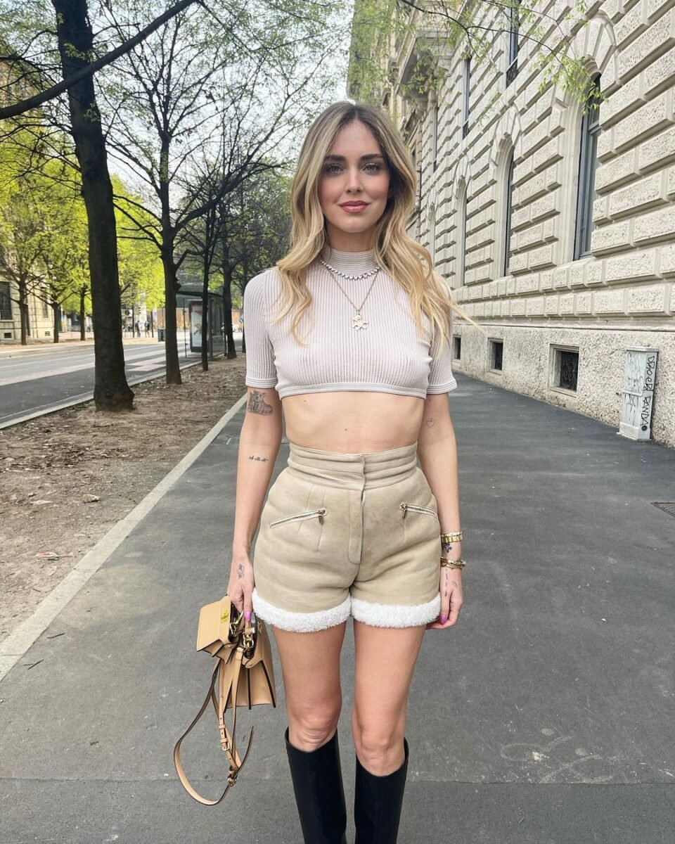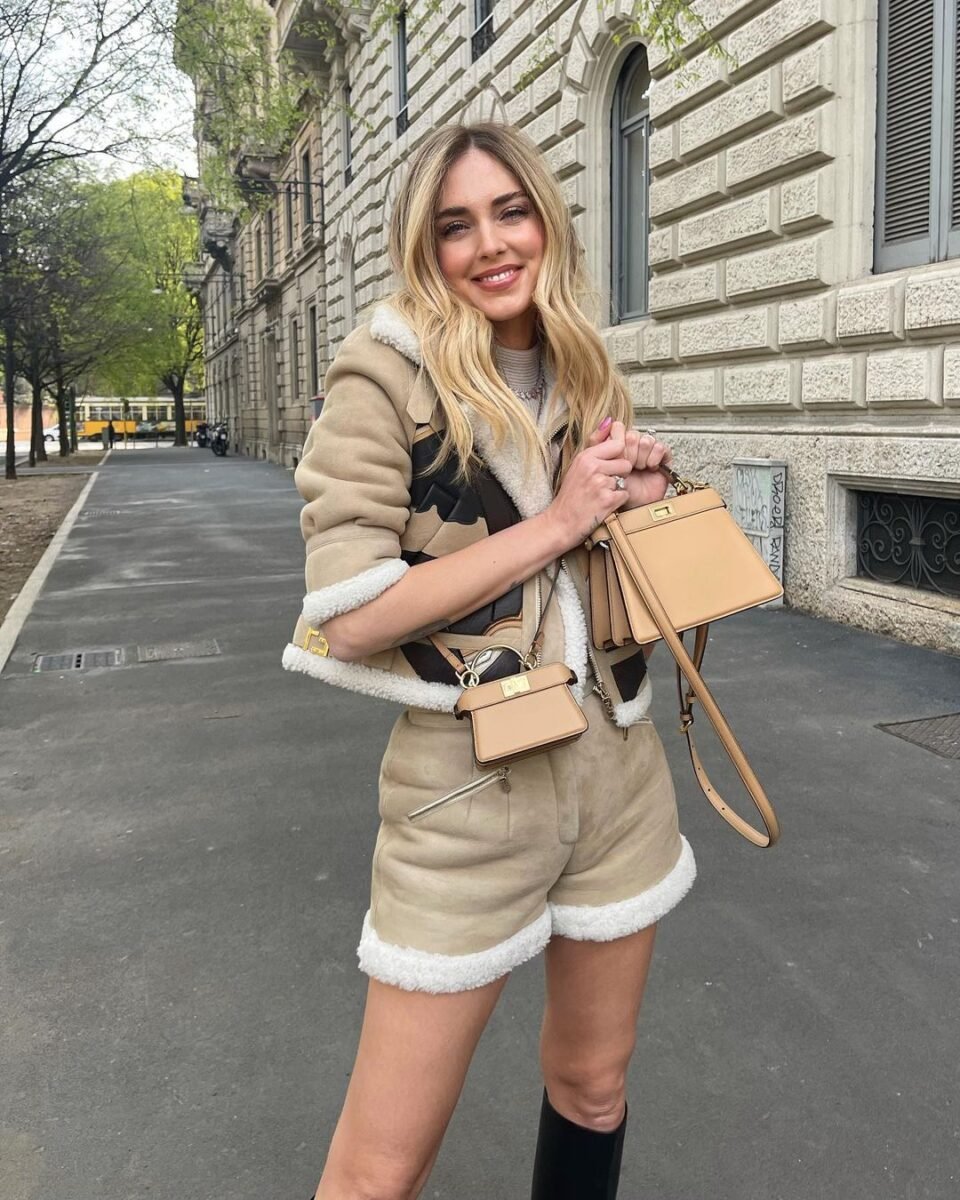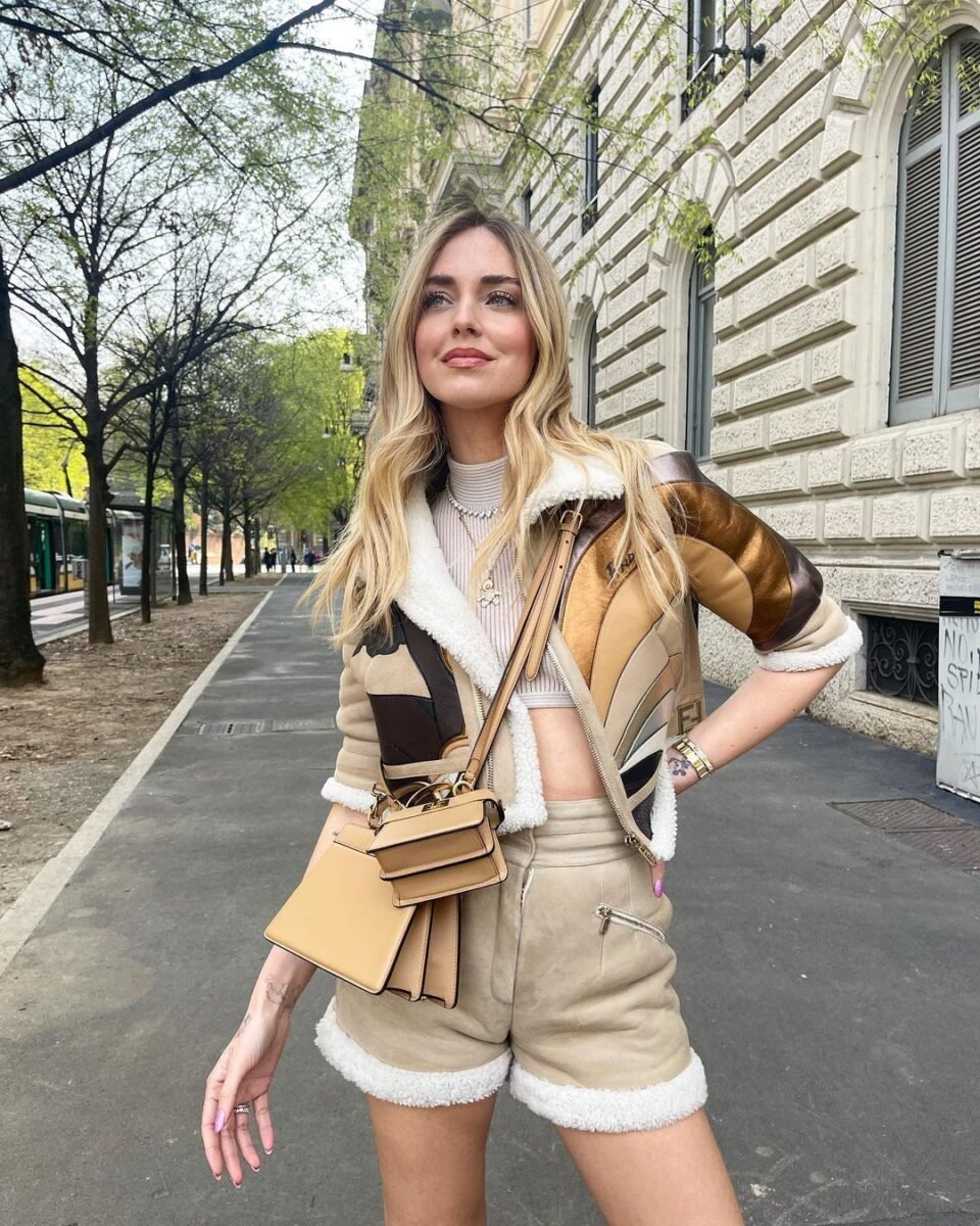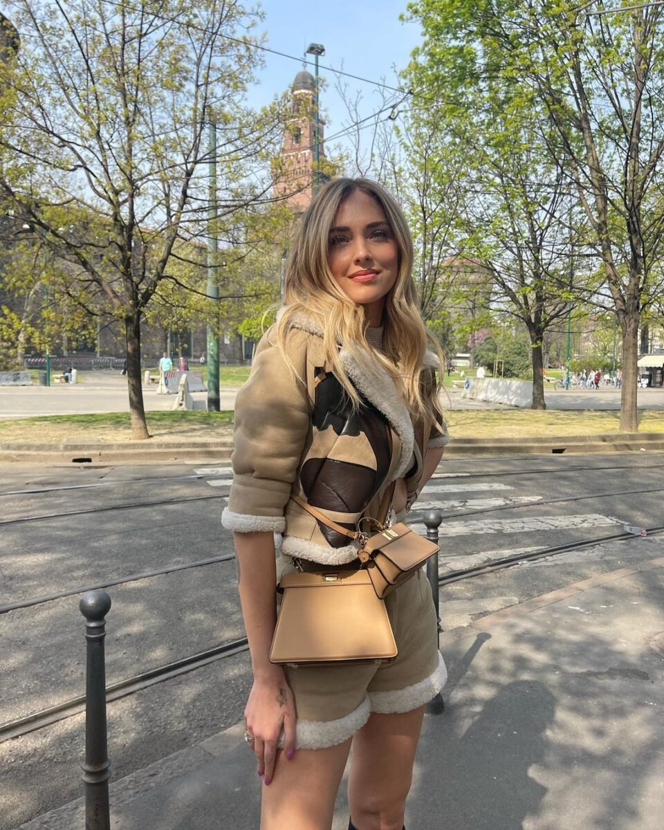 Chiara ha ripreso a uscire con gli amici e ad andare in giro per le vie dello shopping di Milano. Dove sfoggia felice il total look Fendi che tanto l’aveva colpita alle sfilate della collezione Primavera -Estate 2022: un bomber cropped modello Aviator e pantaloncini abbinati che esaltano il suo fisico perfetto. Solo il bomber costa 7.500 euro. Ma è in morbida pelle scamosciata, con interno in shearling bianco, intarsi in pelle e nappa laminata.
