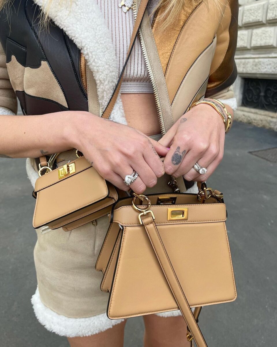 Una borsetta non basta. Parola di Chiara e Valentina Ferragni che, a spasso ciascuna per proprio conto a Milano, ne sfoggiano due. Si tratta delle Peekaboo bags di Fendi, borse compatte disponibili in diverse dimensioni e colori, il cui prezzo parte dai 2900 euro della “petite” per poi salire fino a cifre molto più alte, a seconda anche del materiale con cui sono realizzate. Quella più pregiata, in pelle di pitone, può arrivare a costare anche 6mila euro.